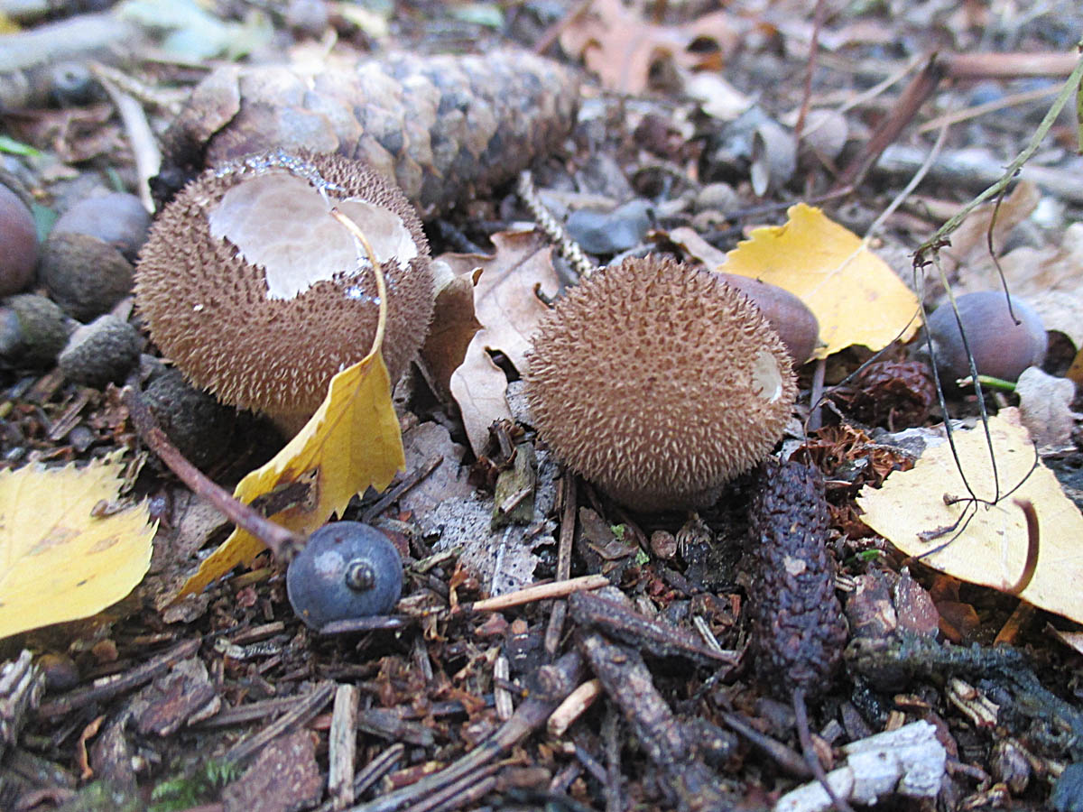 Beutelstäublinge (Lycoperdon excipuliforme), Flaschenstäublinge (Lycoperdon perlatum) und vermutliche Bräunliche Stäublinge (Lycoperdon umbrinum) waren zu sehen.