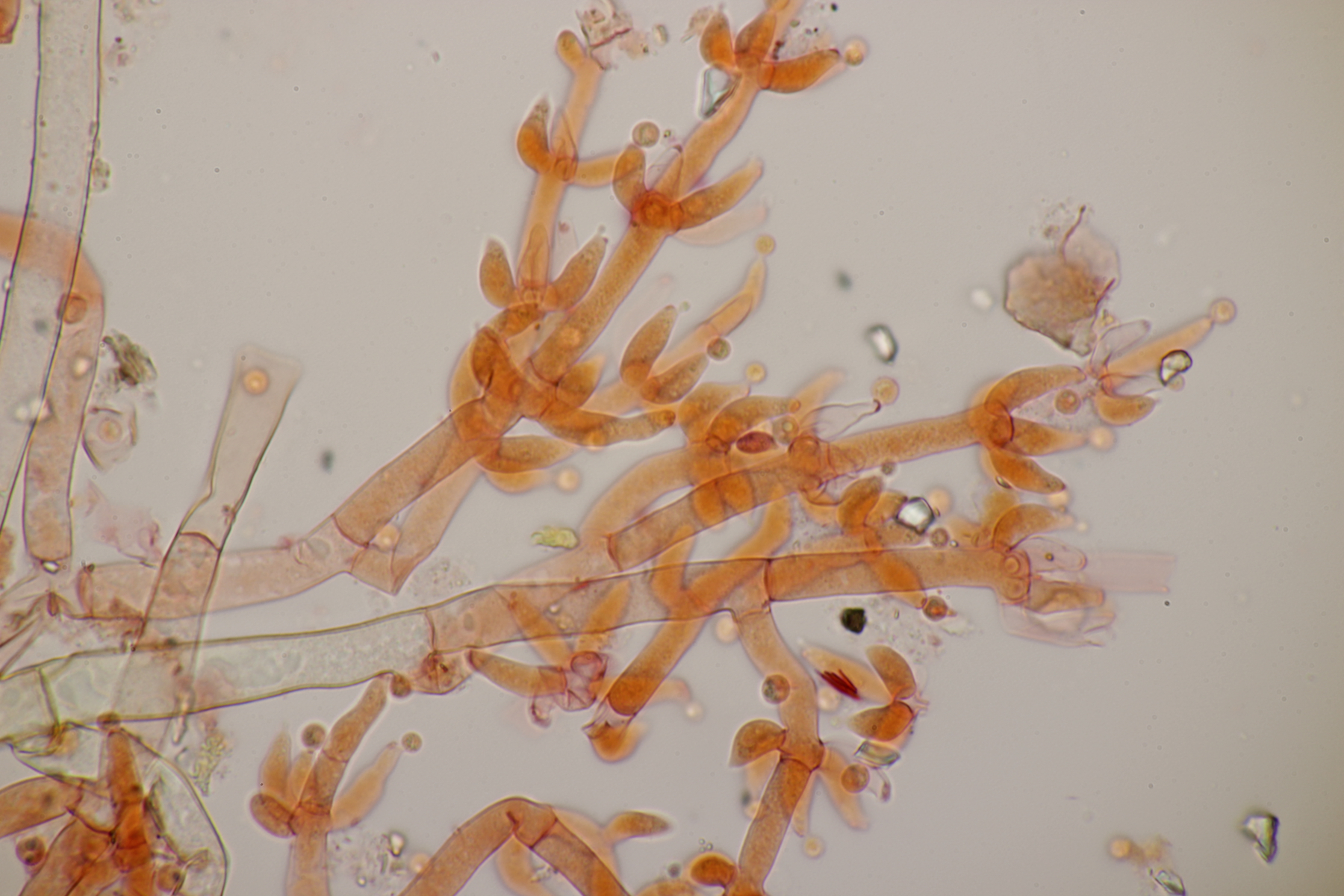 4. Hier hatte ich im Feld an ein Botryobasidium gedacht, aber scheinbar ist es eine Anamorphe, die dort sehr großflächig einen größeren Ast besiedelt hat
