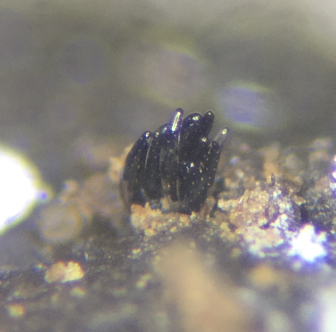 Diese Sporormiella (?) hat einen sehr langen und gebogenen Hals. Gefunden auf Hirschdung von New Jersey. Die Asci sind biseriat oder triseriat und bis zu 320µm lang. Die Sporen sind vierzellig und bis zu 120µm lang und die Sporenzellen 28-30µ x 14-15µm. Die Keimspalte ist in der Mitte und parallel zur Längstseite. Die größte Art die ich kenne ist S. ovina - könnte das die sein?