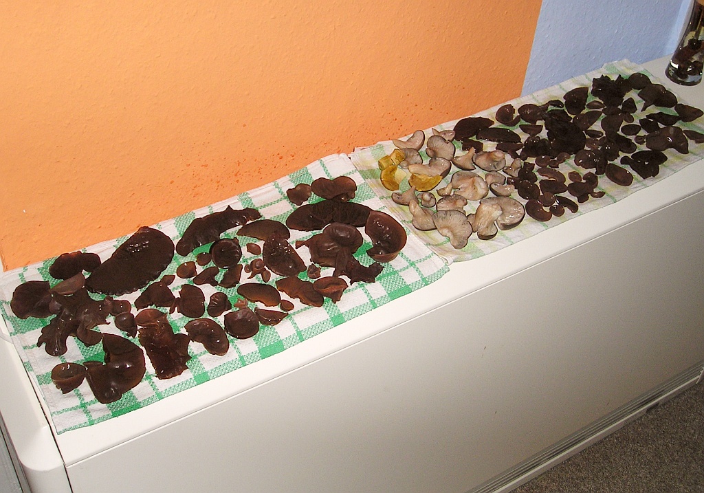 Nun werden die feinen Pilzchen auf der Heizung getrocknet (dank der nicht sparsamen Nachtspeicheröfen kein Problem).