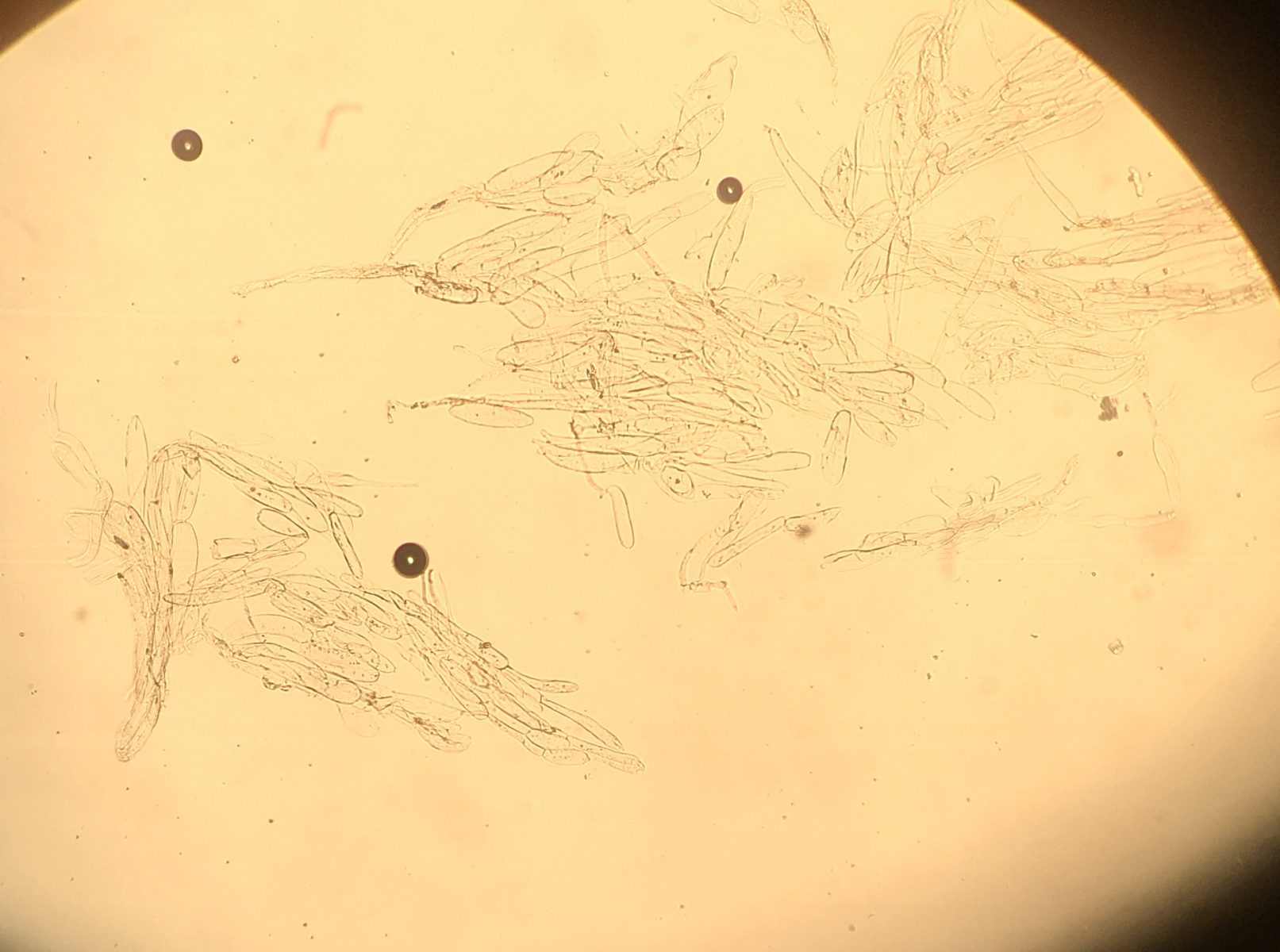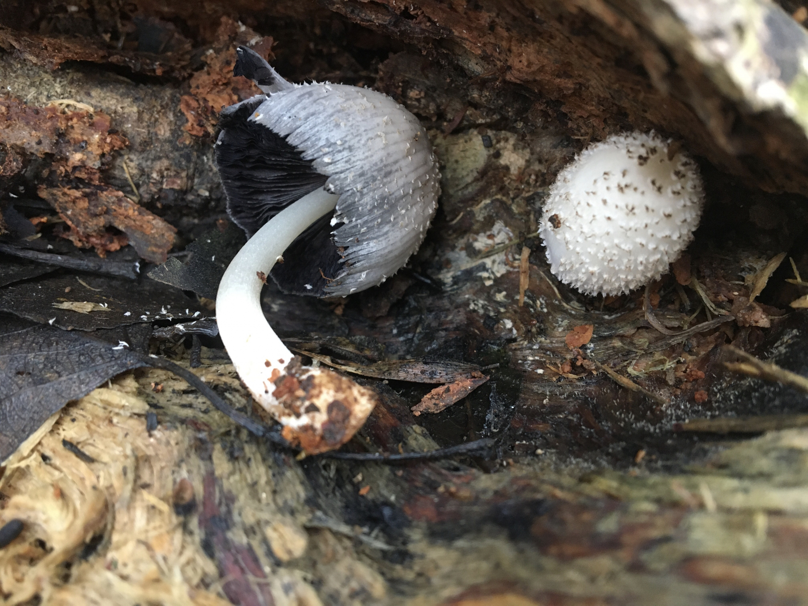 heute fand ich im Wiener Prater an einem relativ morschen Stammstück in einem von einem Specht geschlagenem Loch folgenden Tintling. Die Sporen messen 8-10 x 5-7, die Schüppchen bestehen aus ziemlich großen wurstförmigen Elementen. Könnte es sich dieses Mal tatsächlich um Coprinopsis mitraespora handeln?