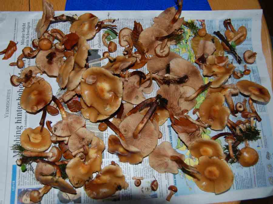 Pilz 3 in Massen, habe nur knackige kleine genommen, z.T. ziemlich kräftige mit häufig dickeren Stielende: