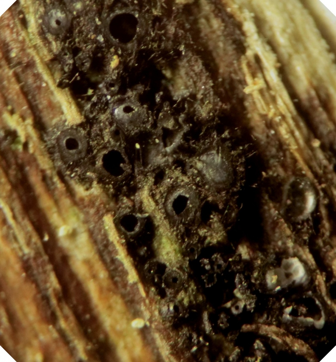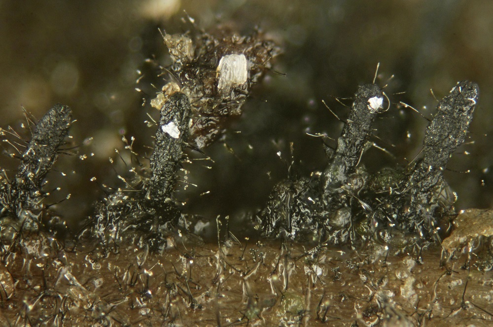 Perithezien auf dem Substrat aufsitzend, mit Seten an der Aussenseite,Perithezienhals lang (Schnabelförmig)