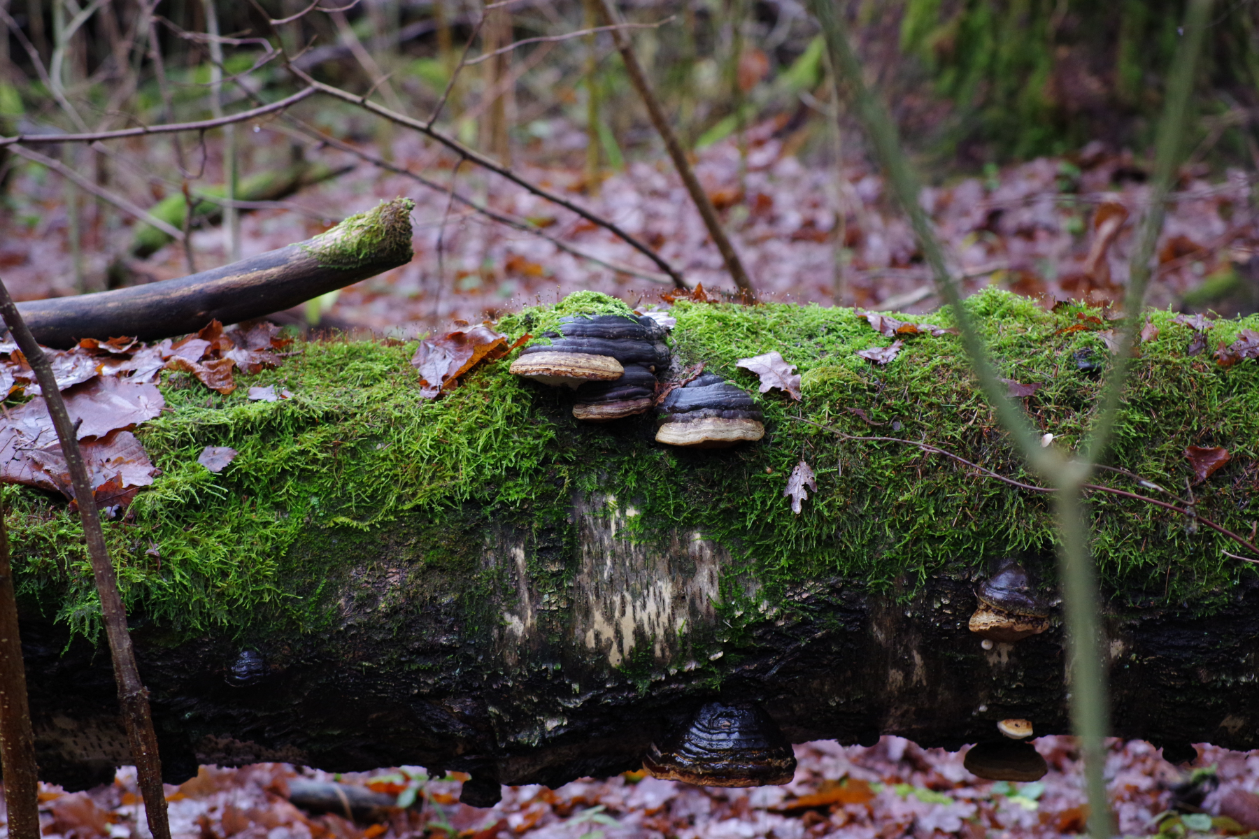 Hallo, ein kurzer Fototermin im etwas feuchteren und erfreulich unaufgeräumten Wald betraf unter anderem diese beiden Porlinge