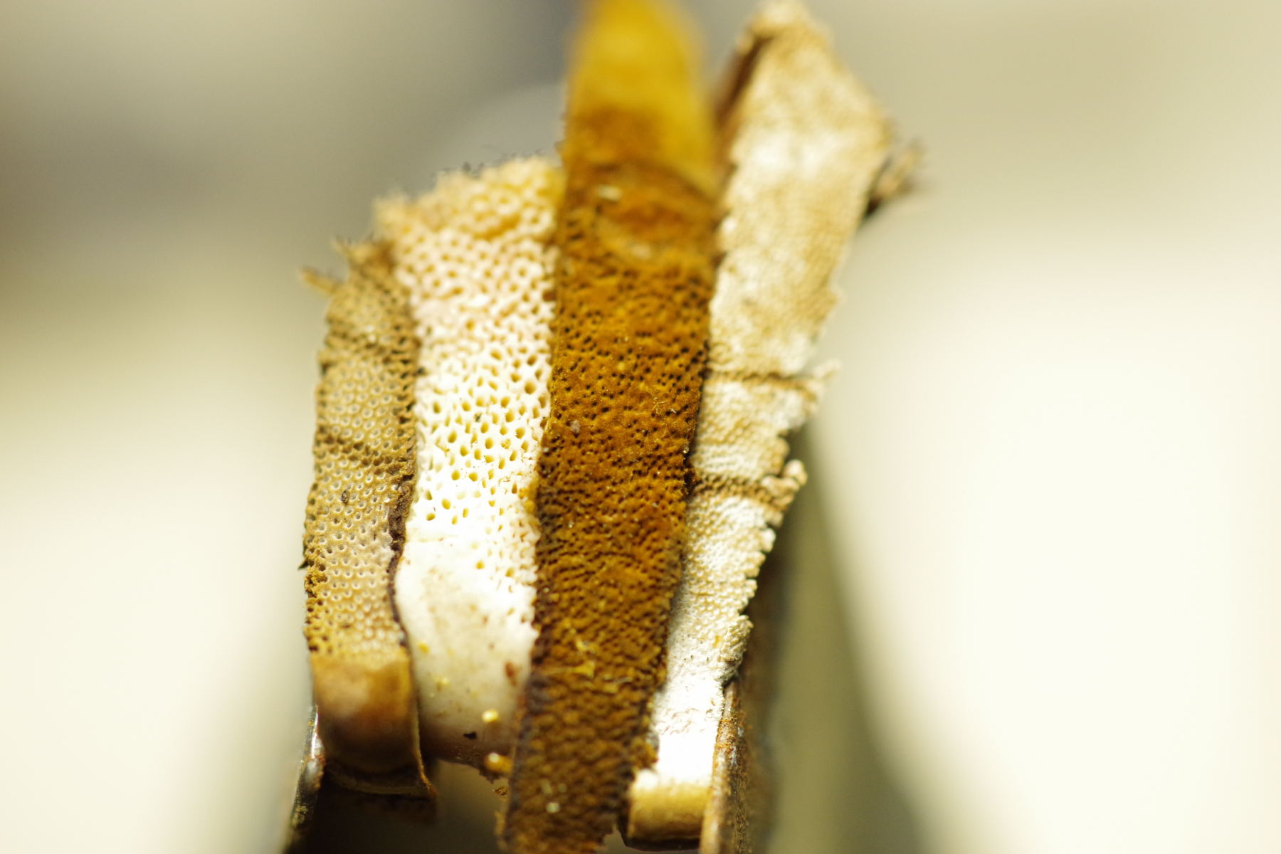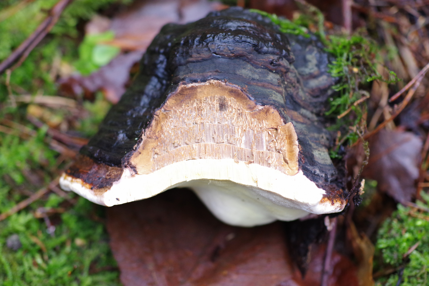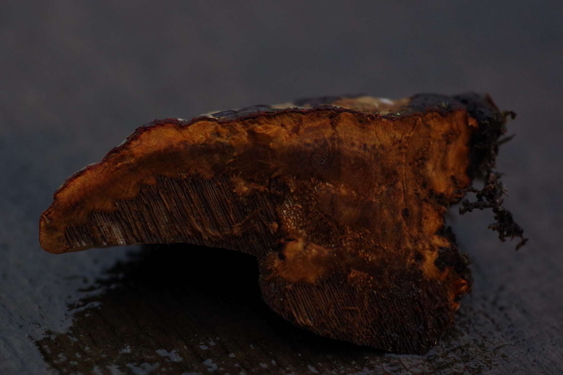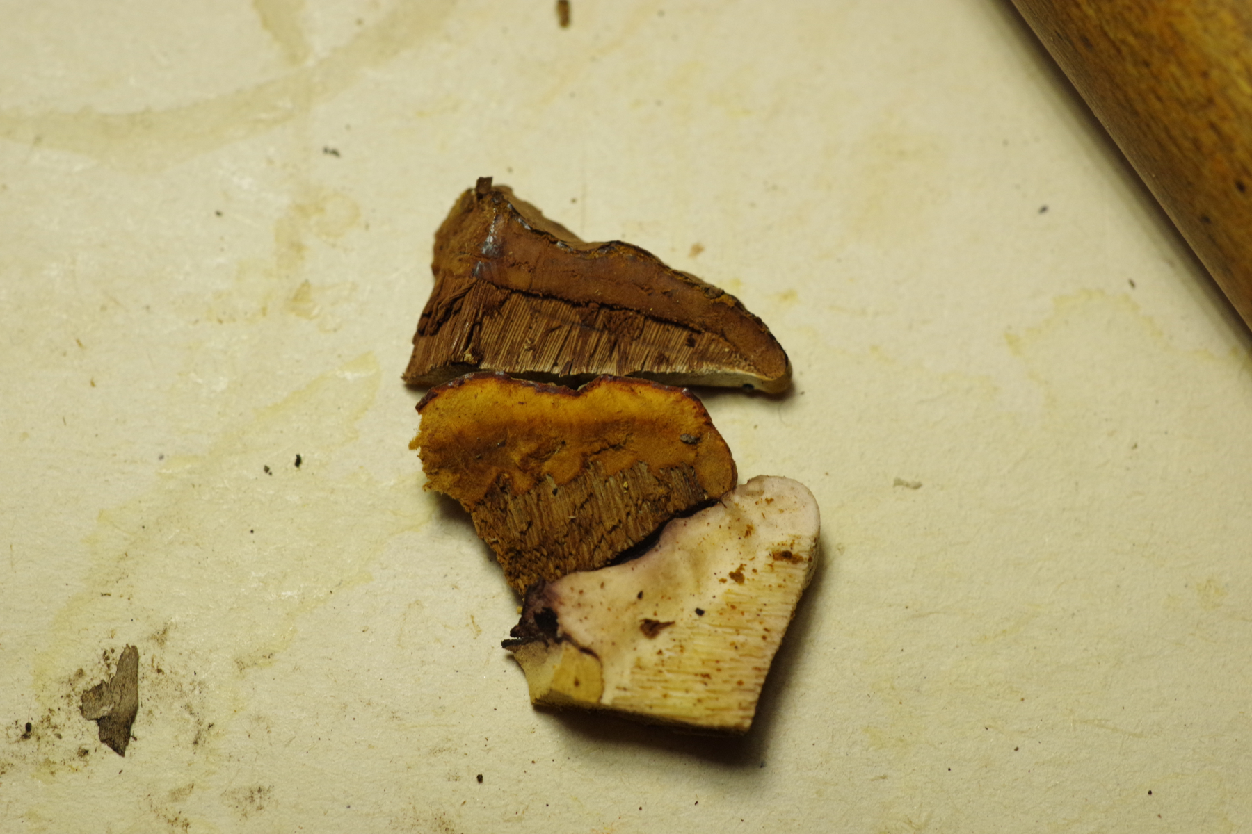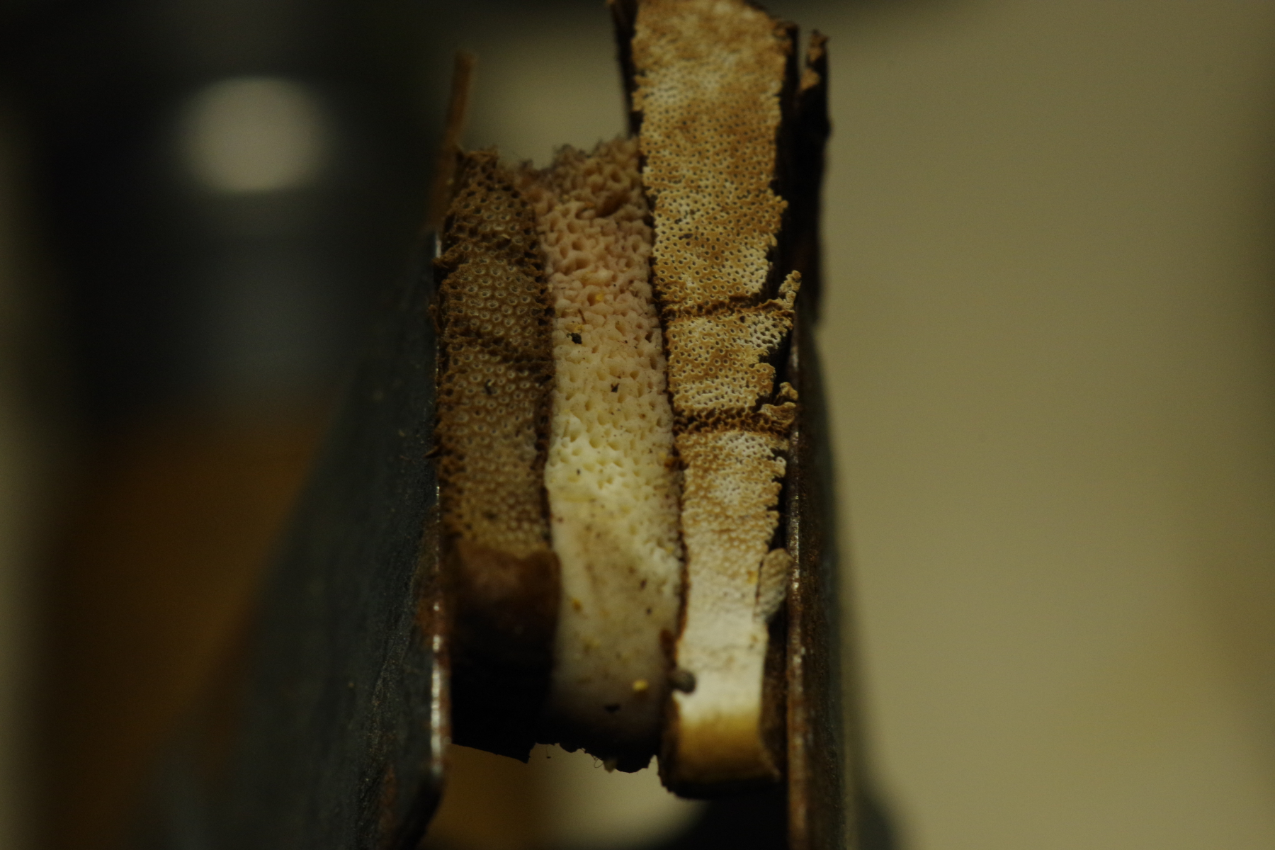 1) vielleicht Phellinus cinereus?