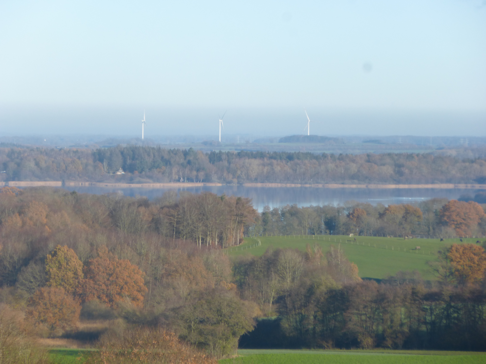 Blick nach Ostnordost, dampfend das Küstenkraftwerk Kiel in knapp 20 km Entferung