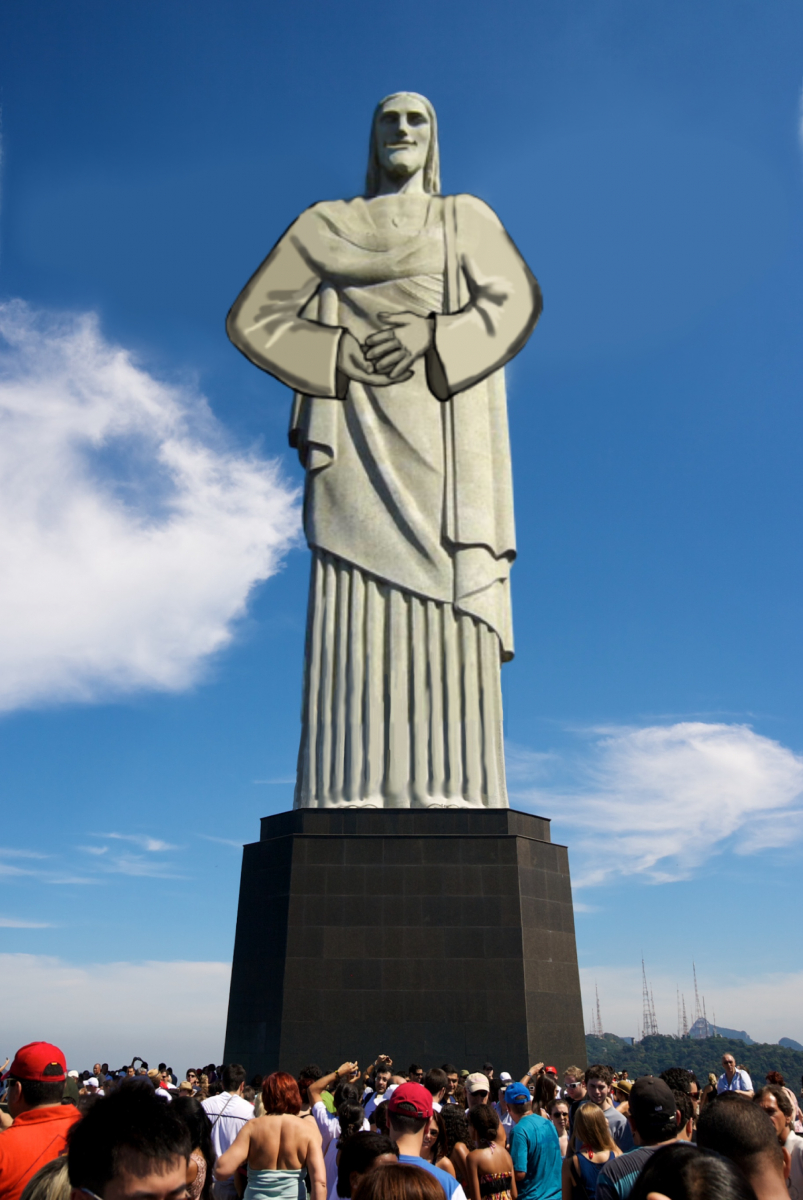 Nee, du sollst dich ja net hetzen, obwohl extra für dich ein Wunder geschehen ist! Jesus aus Rio steht jetzt sogar mit Wolkenhimmel und Publikum bereit und klatscht für dich!