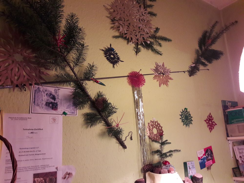 Die Gnuppie hat uns Diesjah gans viel schöö Pilzis ==fliege==lamessbar==fliege aufhängt un so anda Sache.