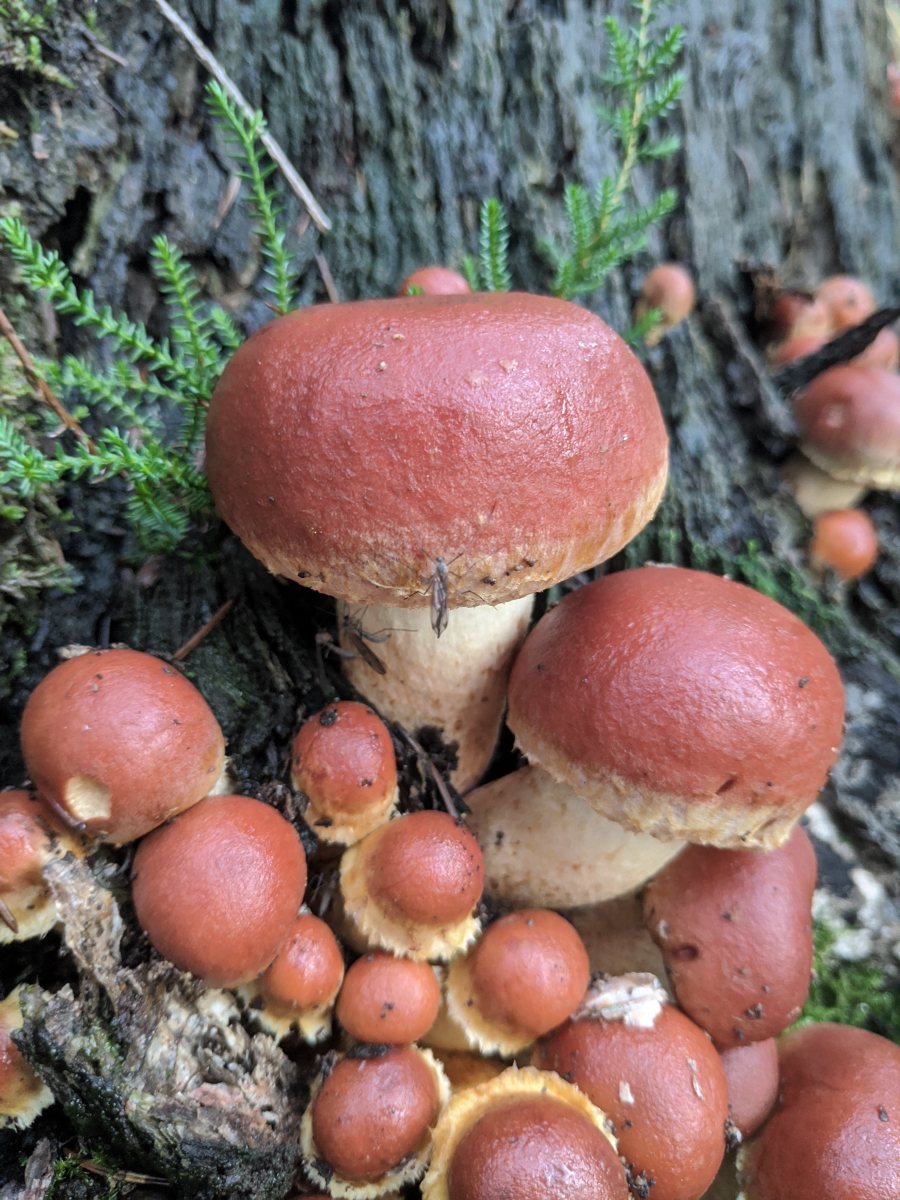 Aber Ziegelrot passt sehr gut , die Masse an Velum am Hutrand und das Büschelige Wachstum,