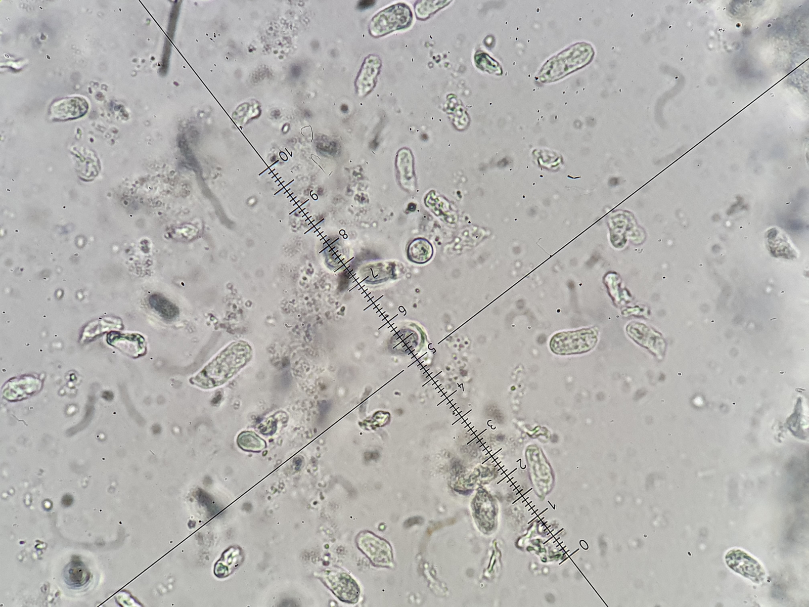 Dagegen tragen die von dir gezeigten Sporen meines Erachtens nicht zur Klärung bei. Leider sind es nur sehr wenige und die sind nach meiner Einschätzung nicht voll entwickelt