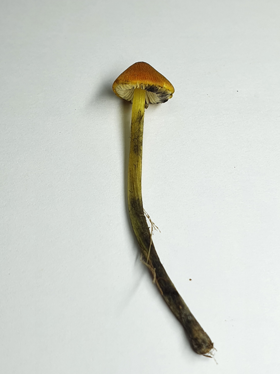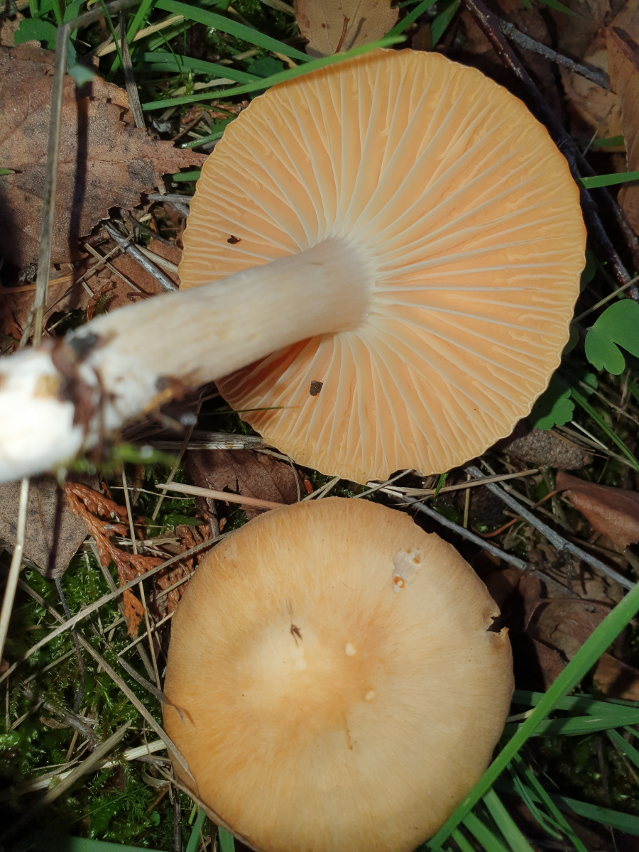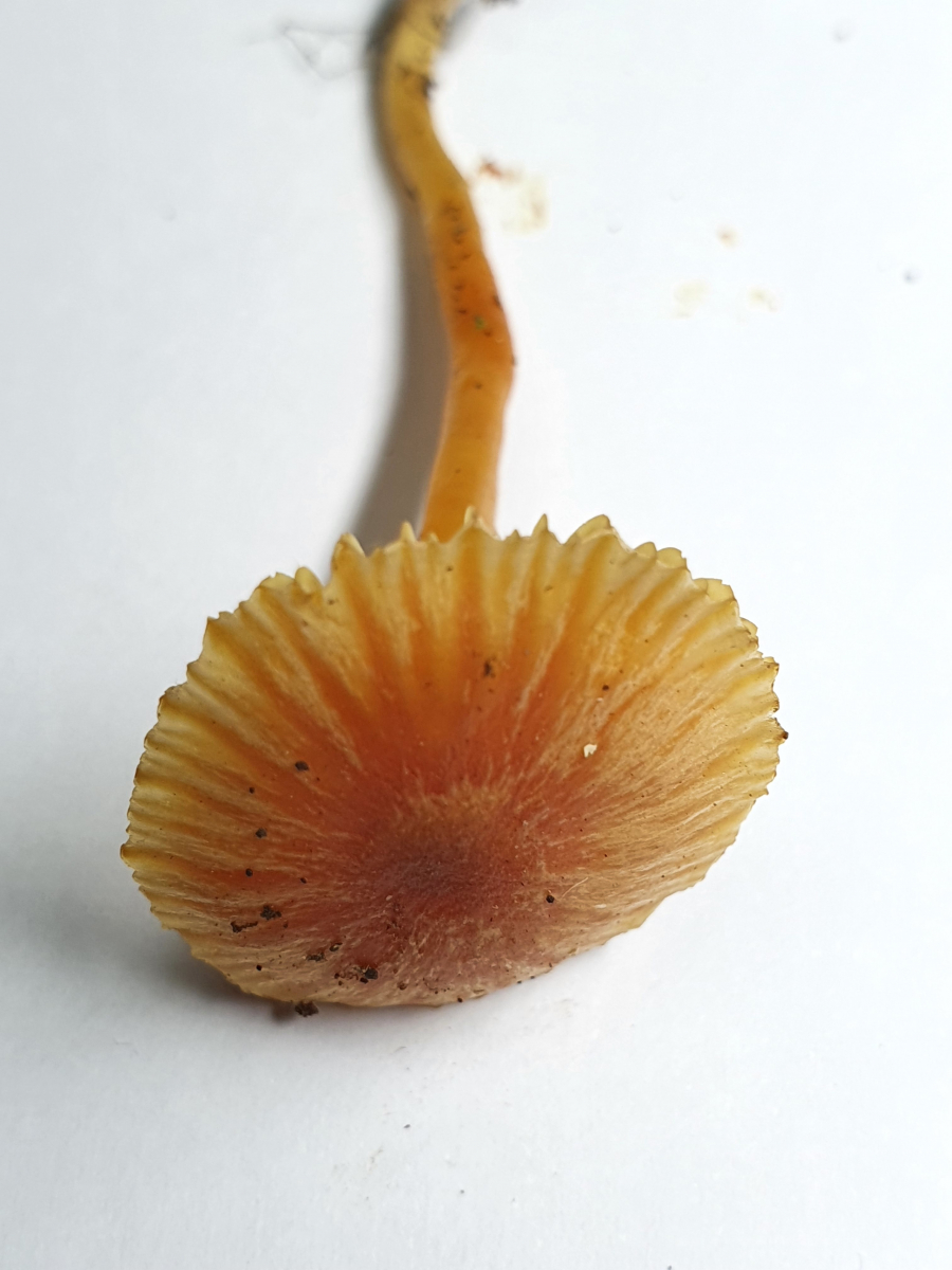 Ich sehe bei dem Fund von Sebastian makroskopisch weit mehr Ähnlichkeit mit H. mucronella als mit H. insipida (siehe meine vorherigen Beiträge in diesem Thread). Hinweisen möchte ich nur noch mal darauf, dass H. insipida-Fruchtkörper höchst selten orange Lamellen aufweisen. In der Regel sind sie deutlich heller und stehen so farblich in einem deutlichen Kontrast zum Stiel.