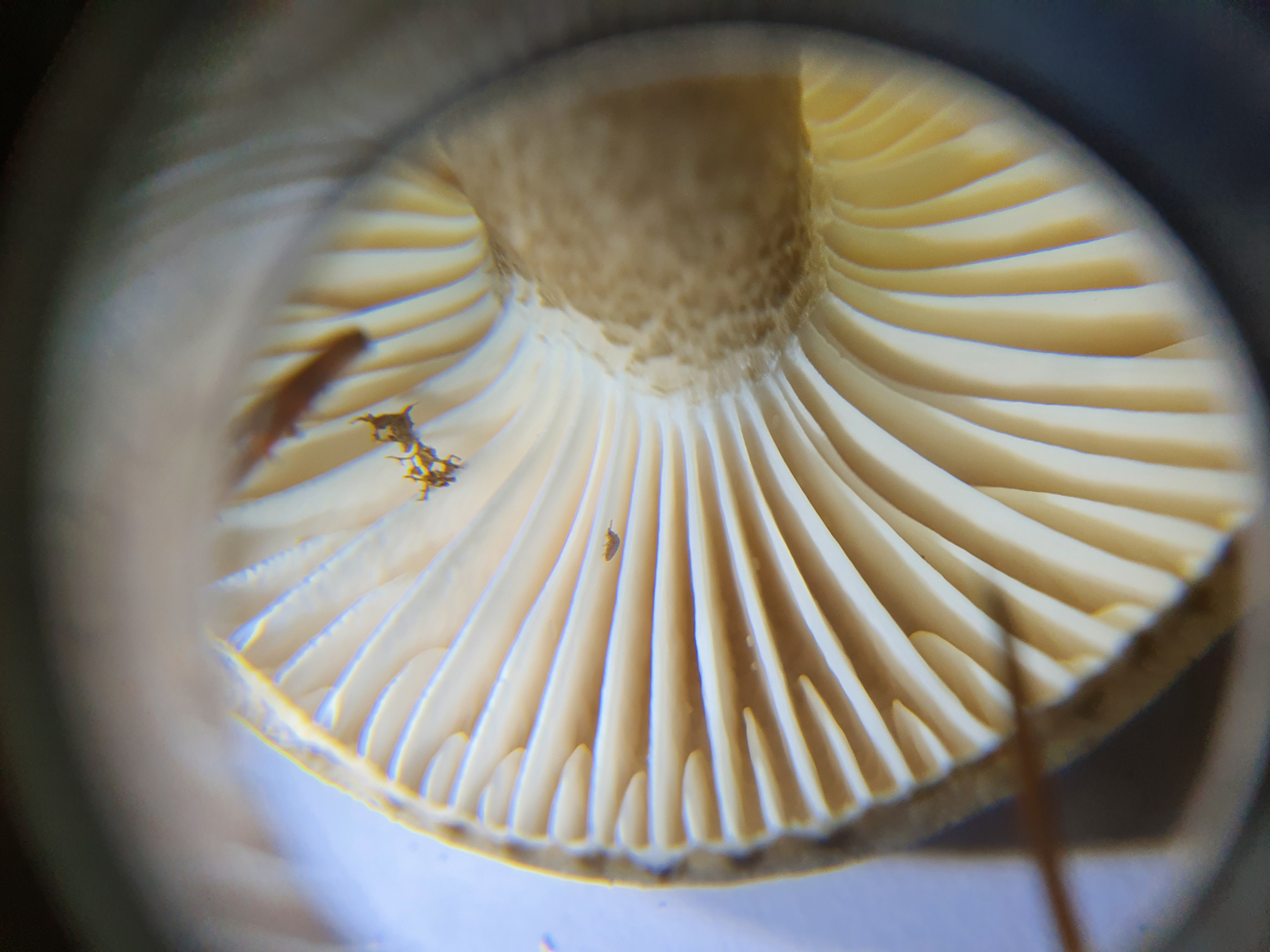 Will sagen: Die stärker durchscheinenden Lamellen sind für H. mucronella-Fruchtkörper dieses Alters absolut typisch!
