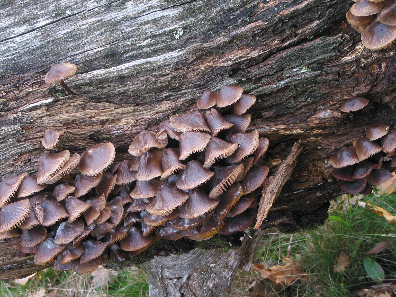 Stockschwammerl -Graublättriger Schwefelkopf - Psathyrella maculata und zwei Mycenen