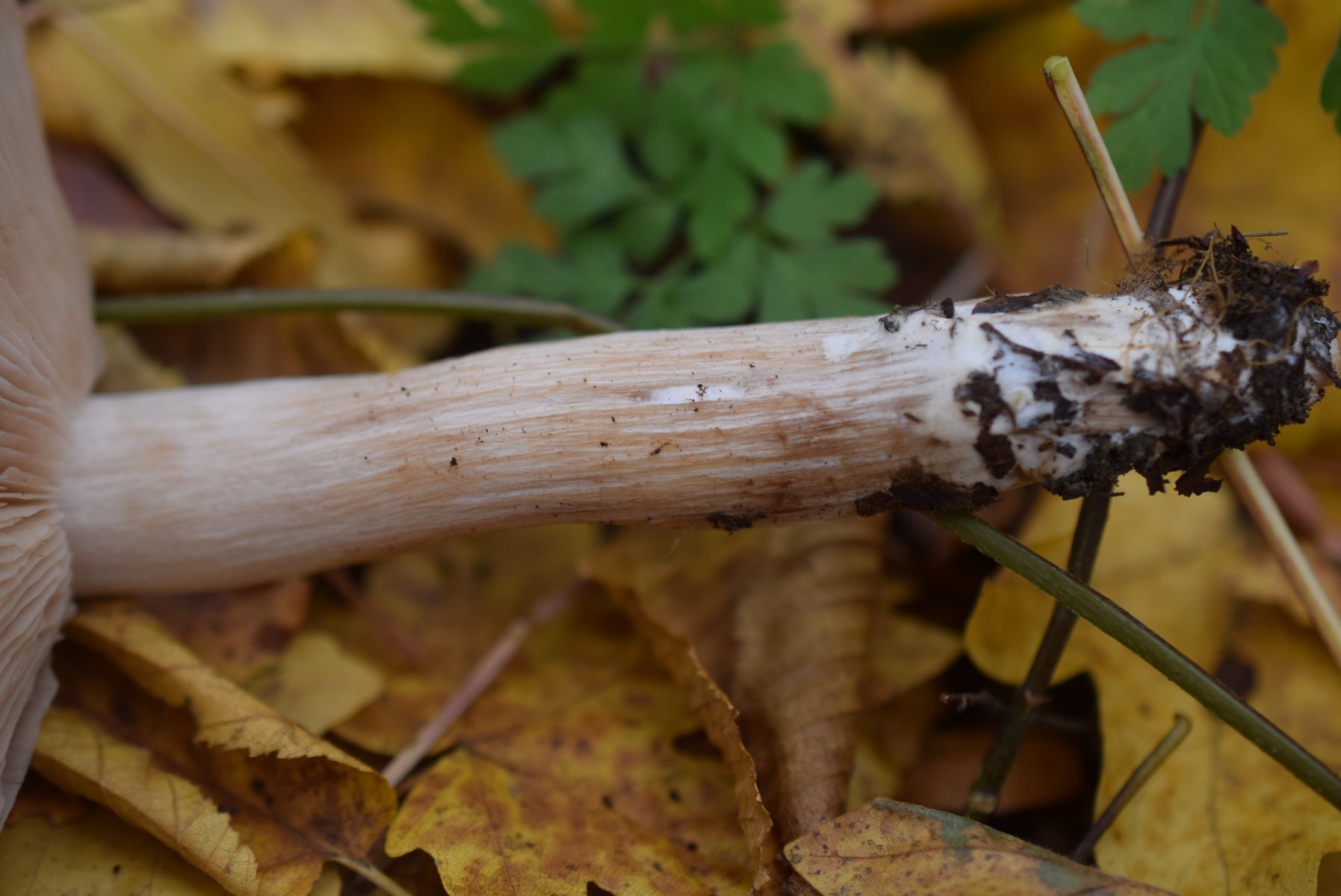 Meine das um Mycena renati gehet weil bei mein Fund Stiel ist ganz gelblich das past bei M. renati , bei Mycena inclinata Stiel ist von Basis bis Mitte Gelblich - Bräunlich aber von Mitte bist Stielspitze hell also na ja zweifarbig .