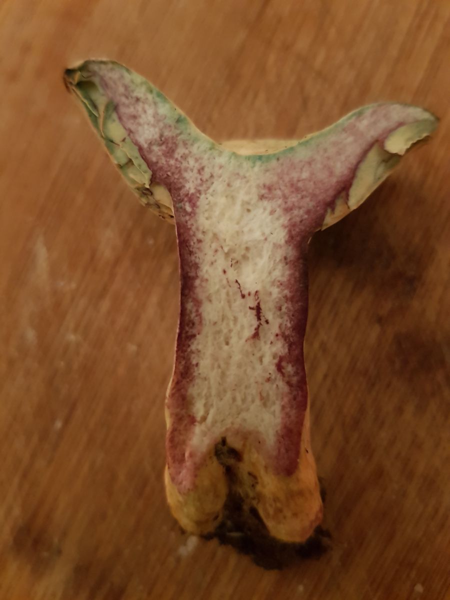 Die Stiele zeigen keine Grübchen. Die Milch war sofort karottenrot, verfärbte sich aber erst nach etwa einer Stunde weinrot (vielleicht der Kälte und Trockenheit bedingt). Was mich stutzig macht: nach GPBW kann auch L. deterrimus nach 10-30 Minuten ins Weinrote umfärben. Das lese ich weder bei Heilmann-Clausen noch bei Gröger.