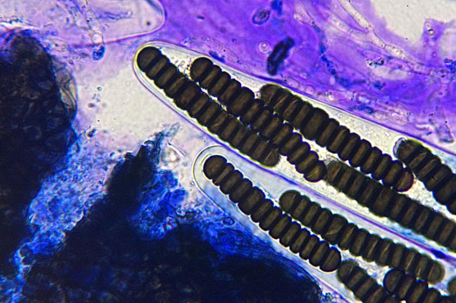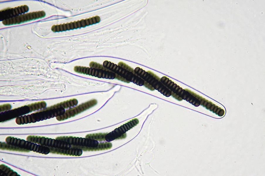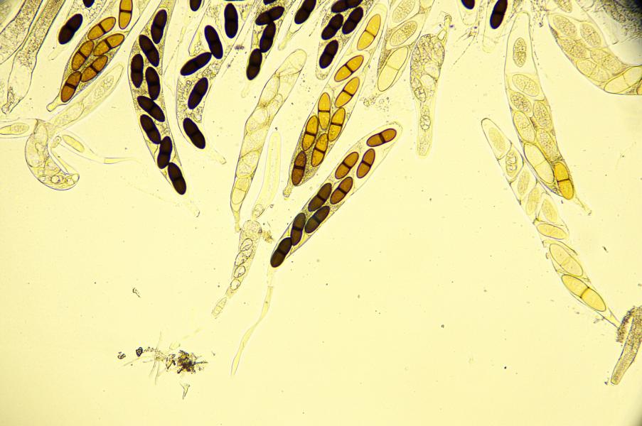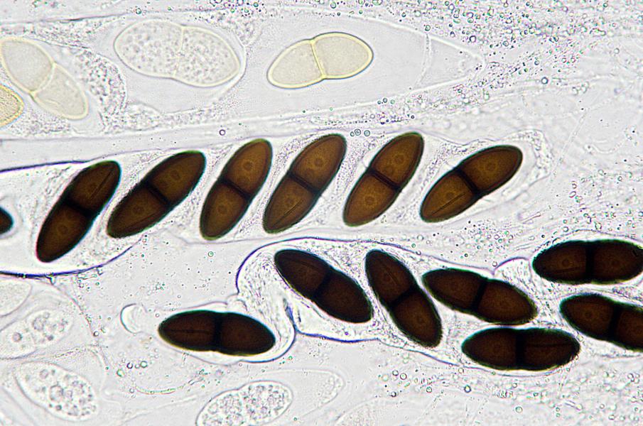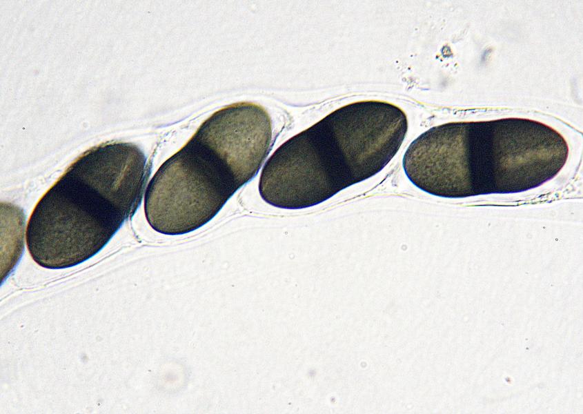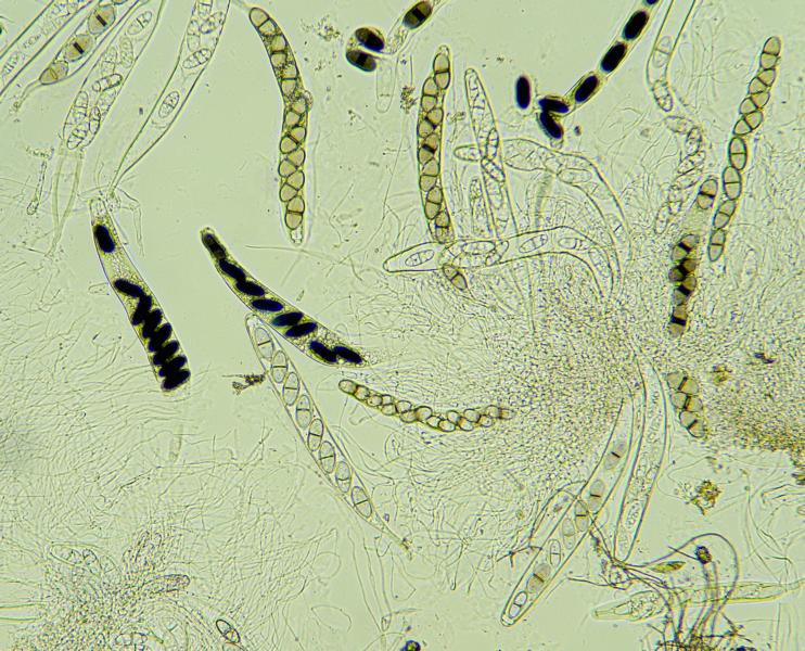 - Sporen: 50 x 10 µ, 13 zellig