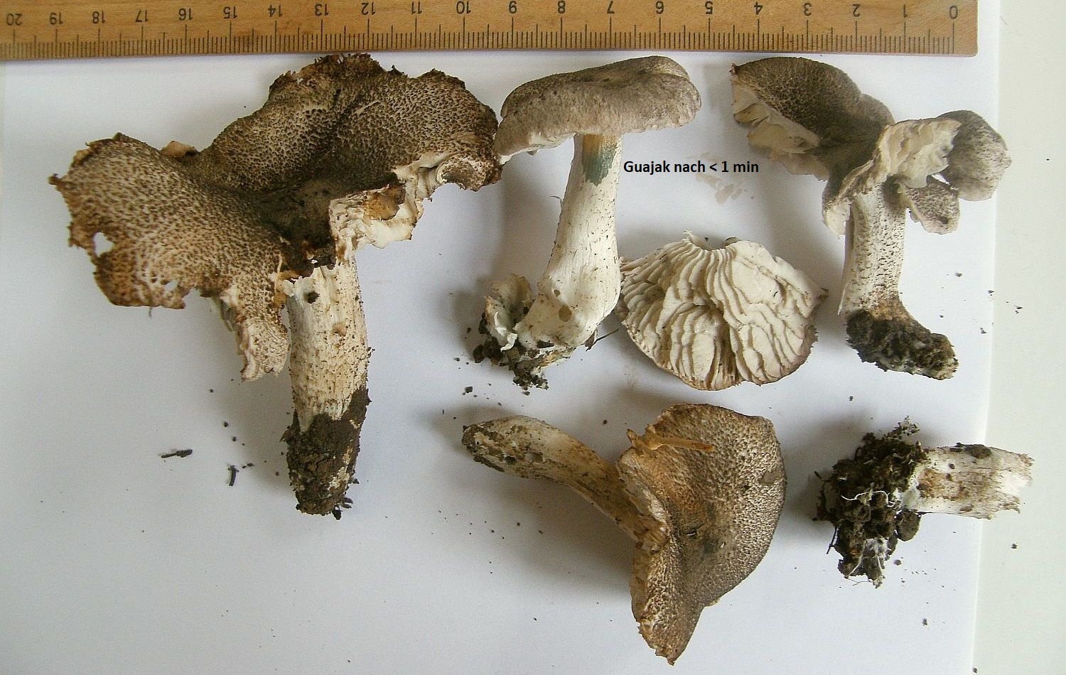 Es ist interessant und immer gut, wenn man Erfahrungen austauschen kann. Bei mir kommt Tricholom orirubens auch gerne in so großen Mengen, also mit vielen Fruchtkörpern pro Myzel, dass ich bei Kollektionen frisch im Gelände nie Probleme hatte, das Gelb des Basalmyzels zu sehen. Manchmal ist es intensiv schwefelgelb, manchmal blasser gelb, aber rein weiß habe ich es nicht nicht gesehen (oder mir ist es nicht aufgefallen oder ich habe dann falsch bestimmt, weil ich dem folge). Bei solchen Merkmalen schaue ich mehrere Stielbasen an und finde, dass man dann in der Kollektion das ganz gut festmachen kann. Das sollte im Schwarzwald dann ja auch gehen, da auch bei Schwankungen in einem Myzel manche eben doch klar gelb sein sollten. Oder hast du auch ganze Myzelien, die praktisch kein Gelb zeigen? Das wäre dann entkräftend.