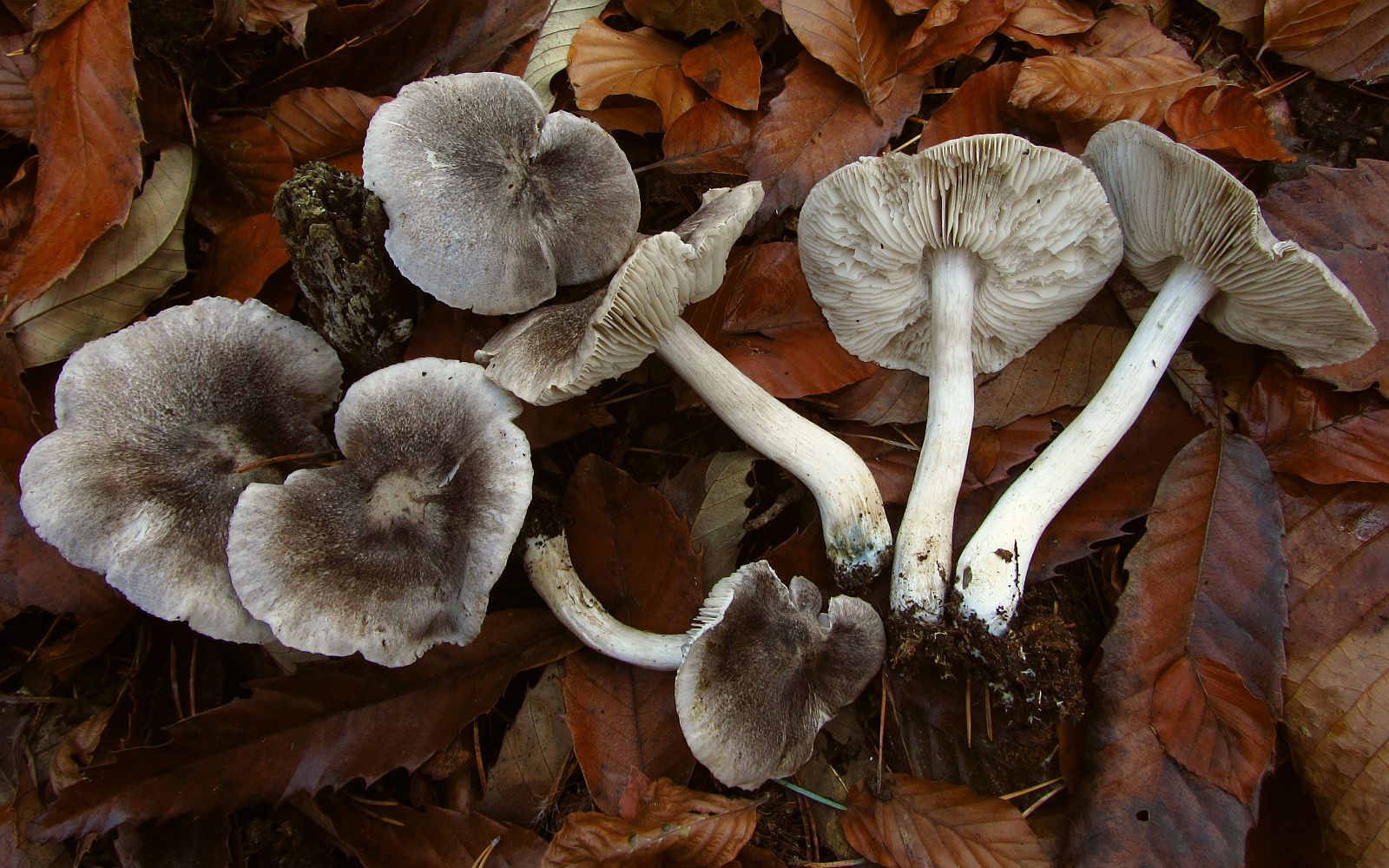 stimmt natürlich, röten können beide und blaue Flecken in der Stielbasis können auch beide haben. Ich muss aber zugeben, dass ich Tricholoma atrosquamosum noch nicht oft in der Hand hatte. Ich kenne den eher aus Nadelwäldern mit eingestreuten Birken, nicht aus reinen Buchenwäldern, was aber nicht viel sagen muss. Und dann eben auch mit feinen, dunklen Flöckchen/Schüppchen am Stiel. Aber die Stichprobenzahl ist halt nicht so hoch...