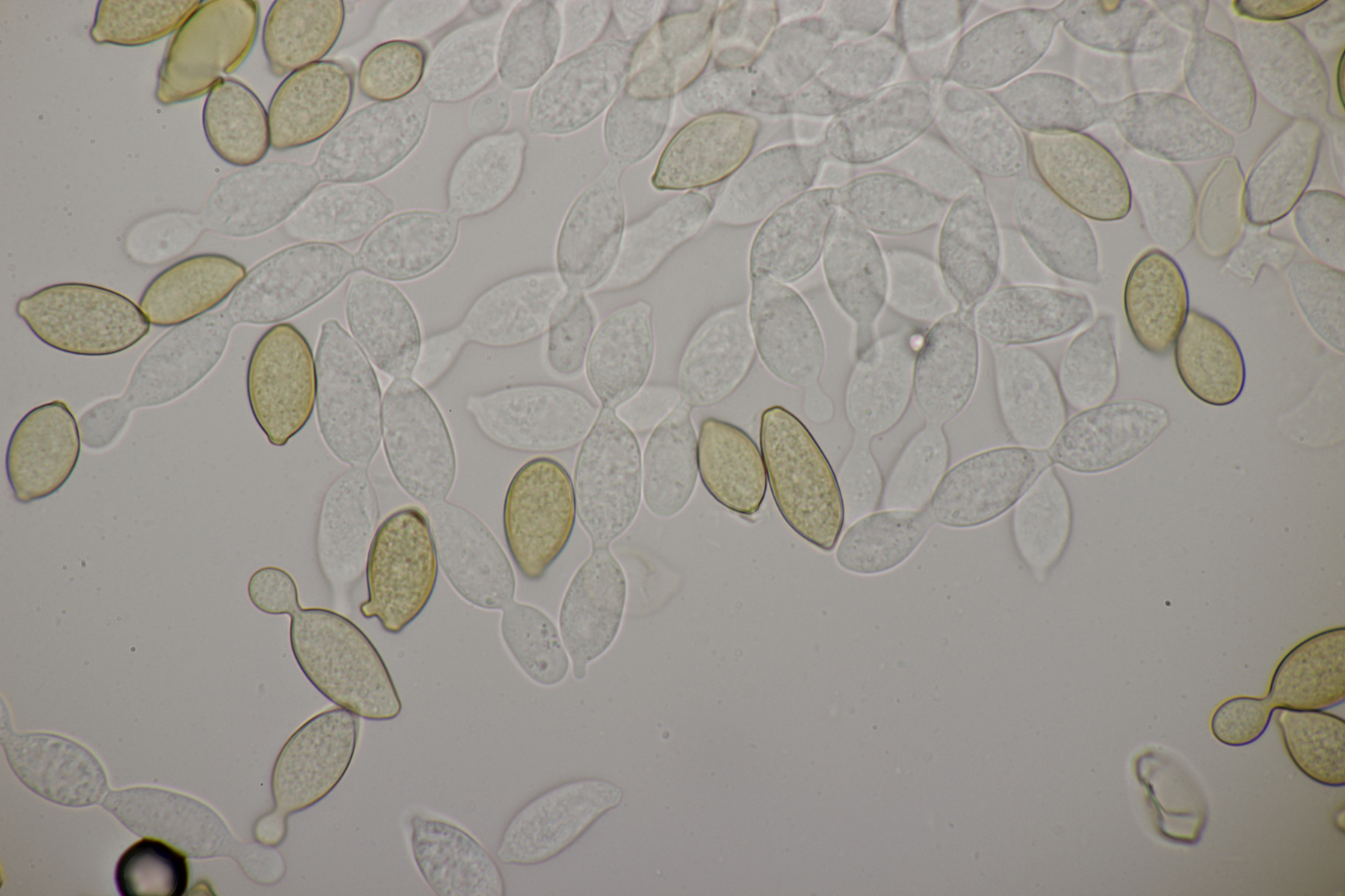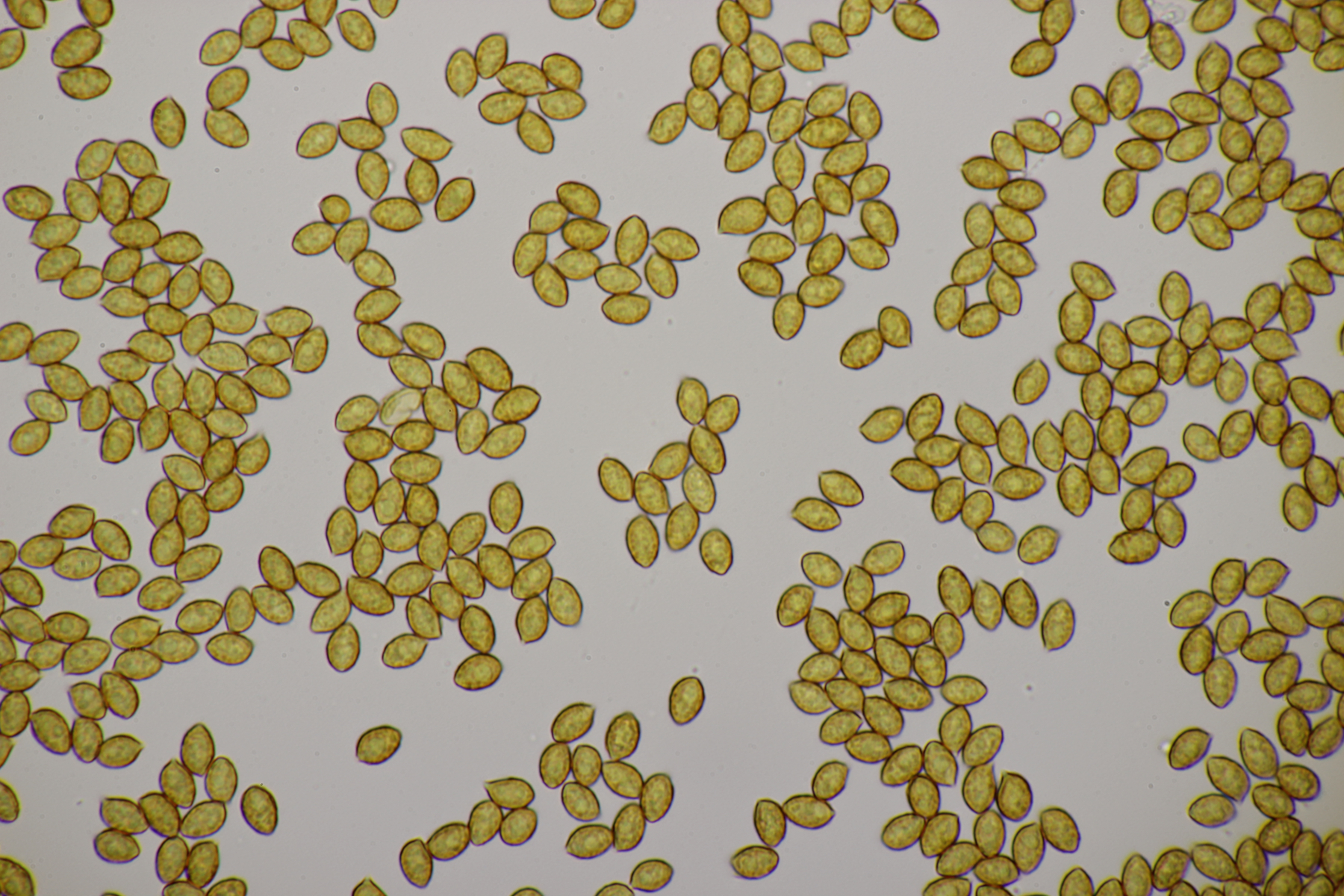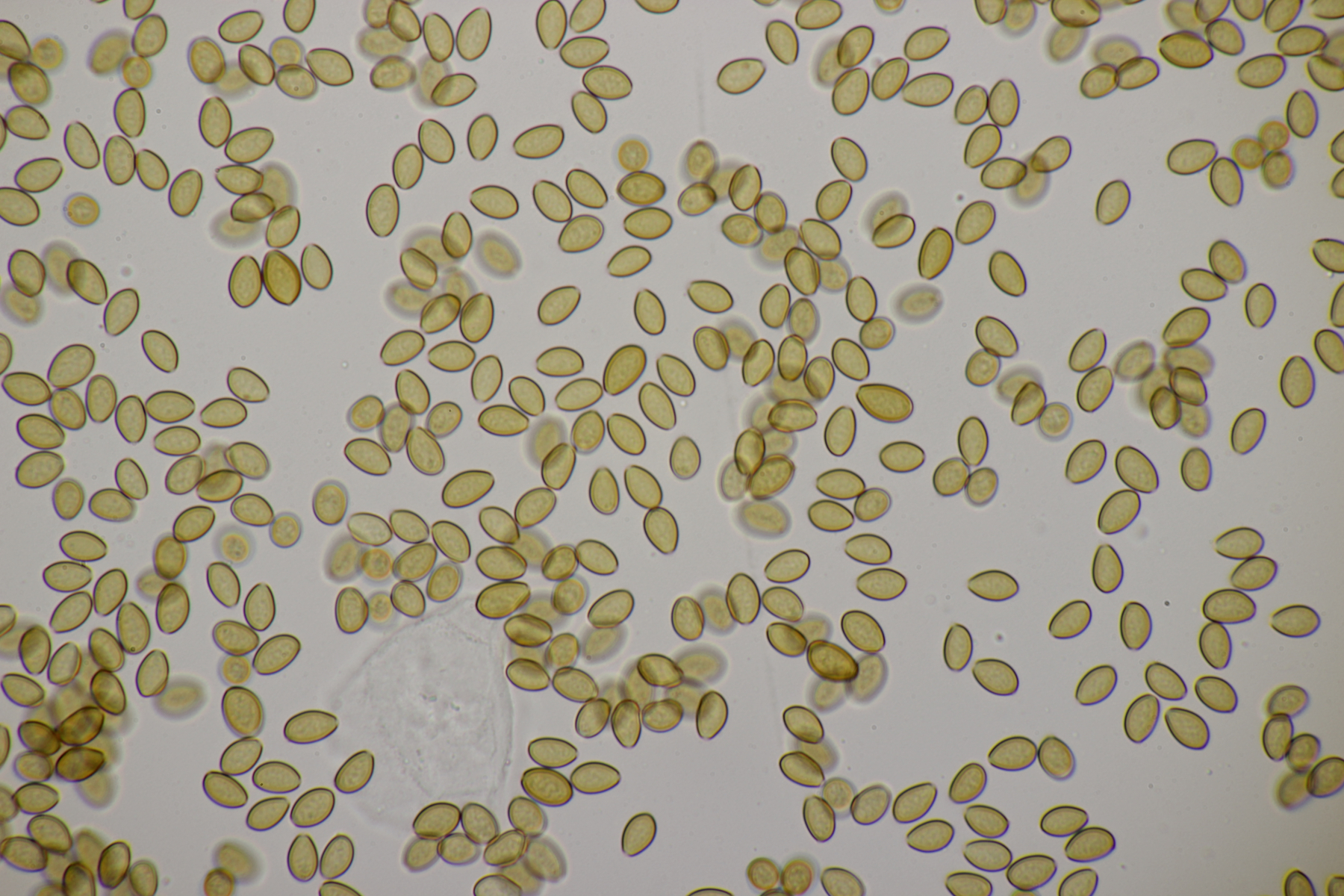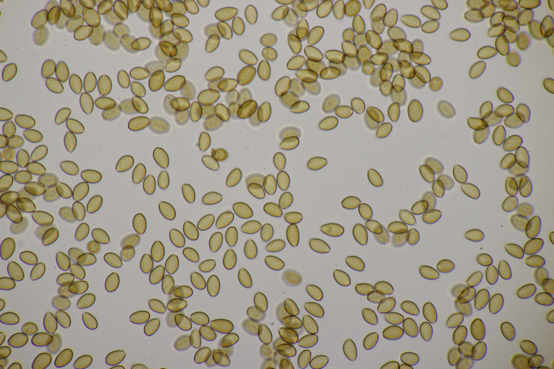 1. Agrocybe praecox. Sporengröße (8.1+-0.4) µm x (5.0+-0.3) µm, Q=1.6+-0.1 bzw. (7.6-9.0) µm x (4.4-5.6) µm, Q=1.5-1.8
