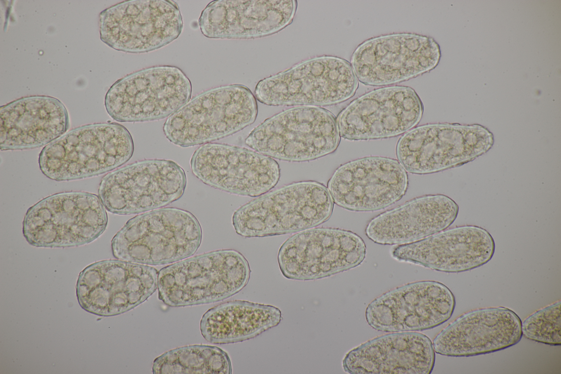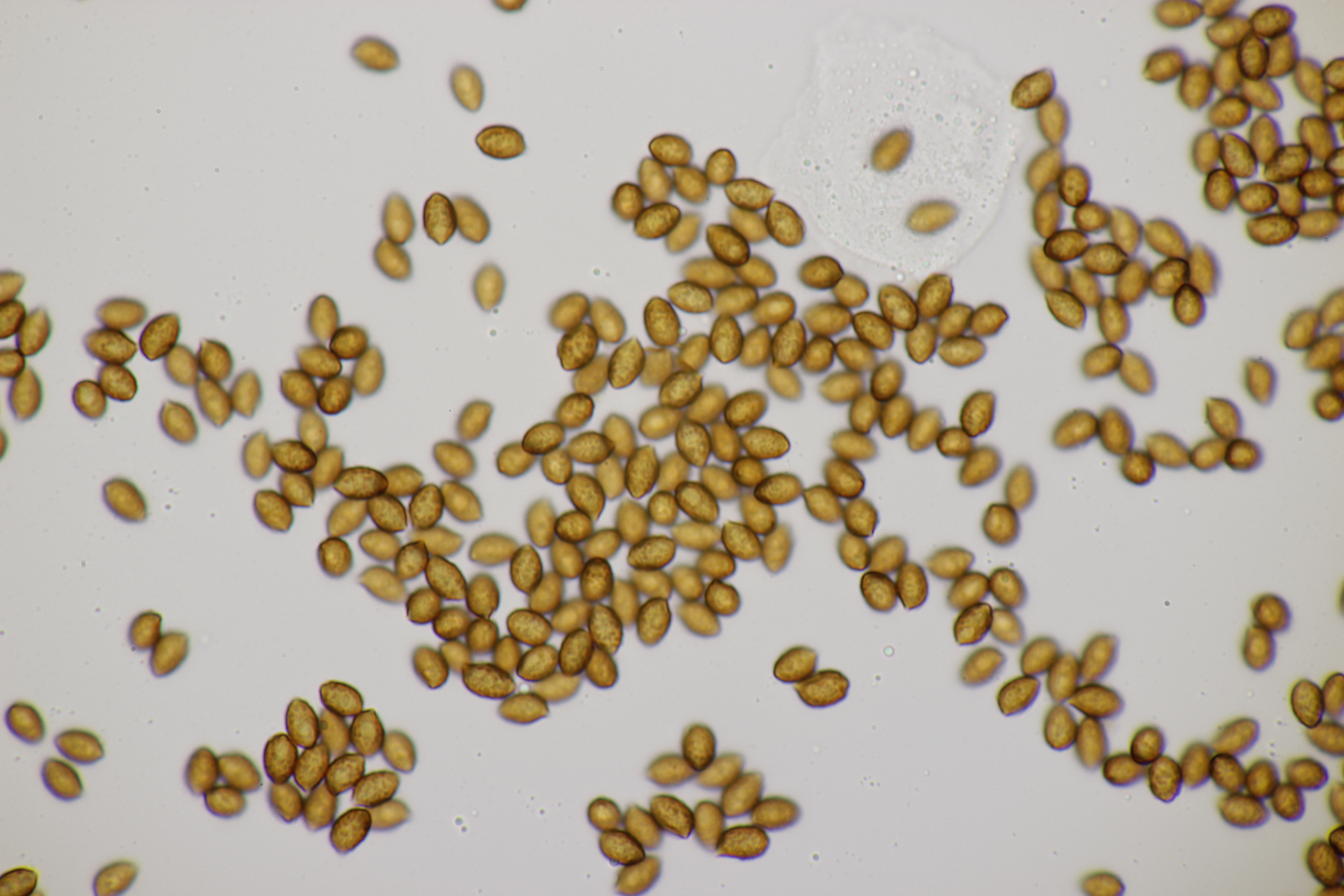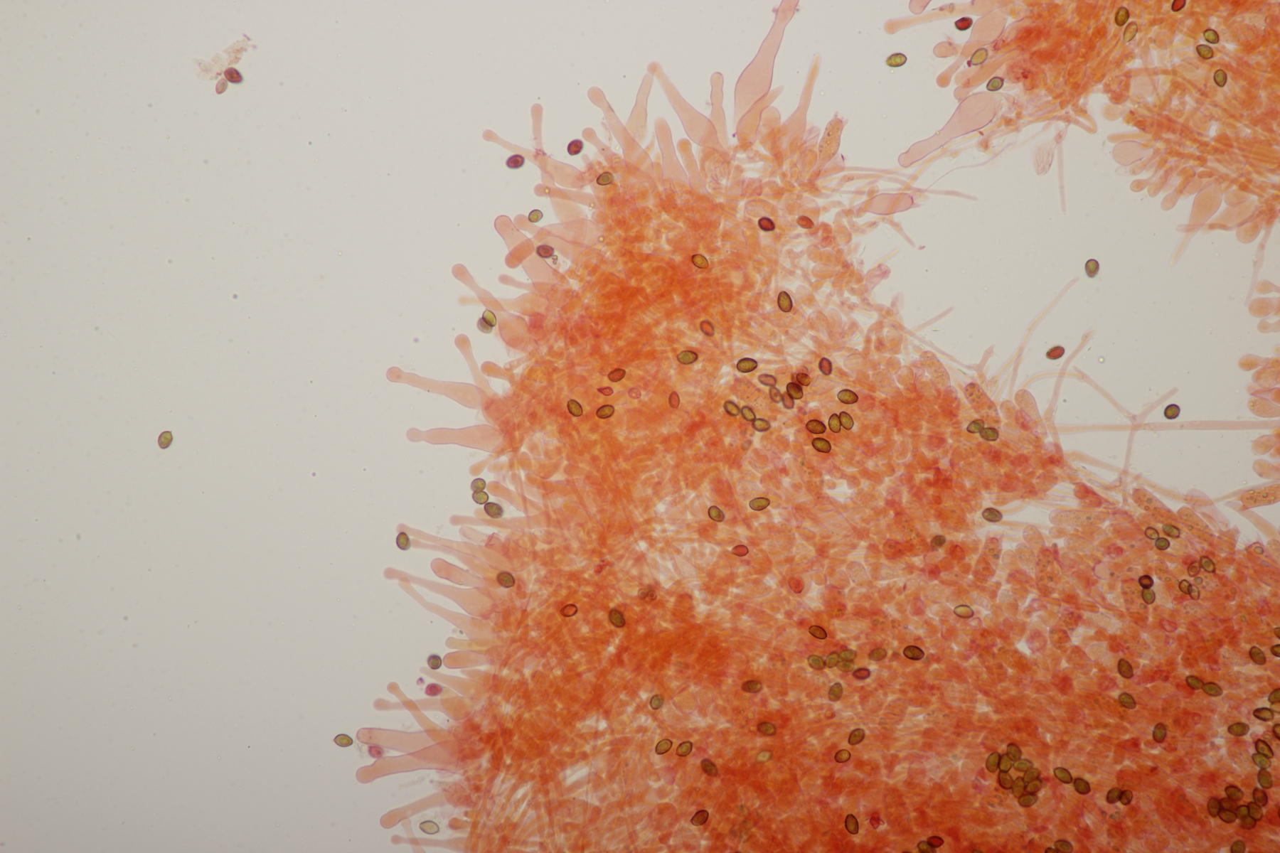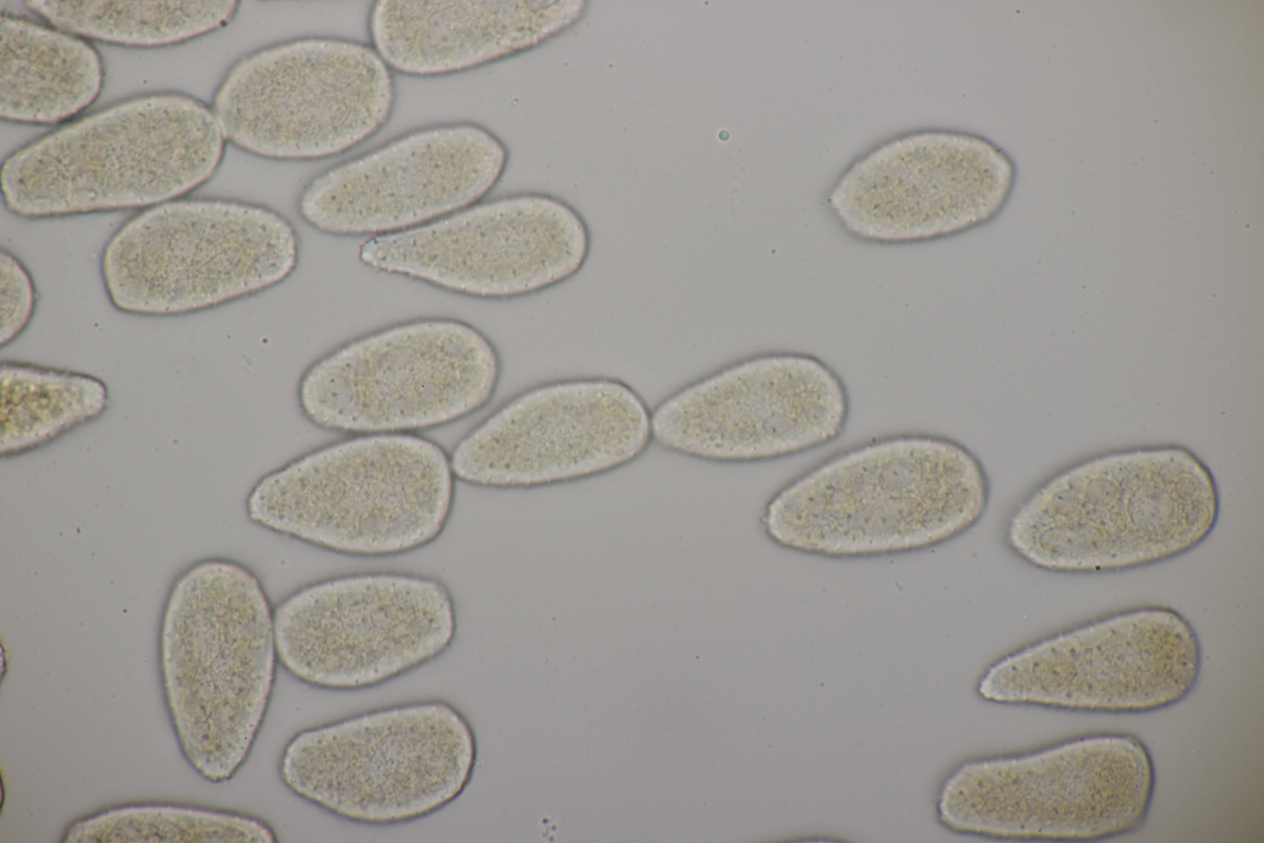 1. Agrocybe praecox. Sporengröße (8.1+-0.4) µm x (5.0+-0.3) µm, Q=1.6+-0.1 bzw. (7.6-9.0) µm x (4.4-5.6) µm, Q=1.5-1.8