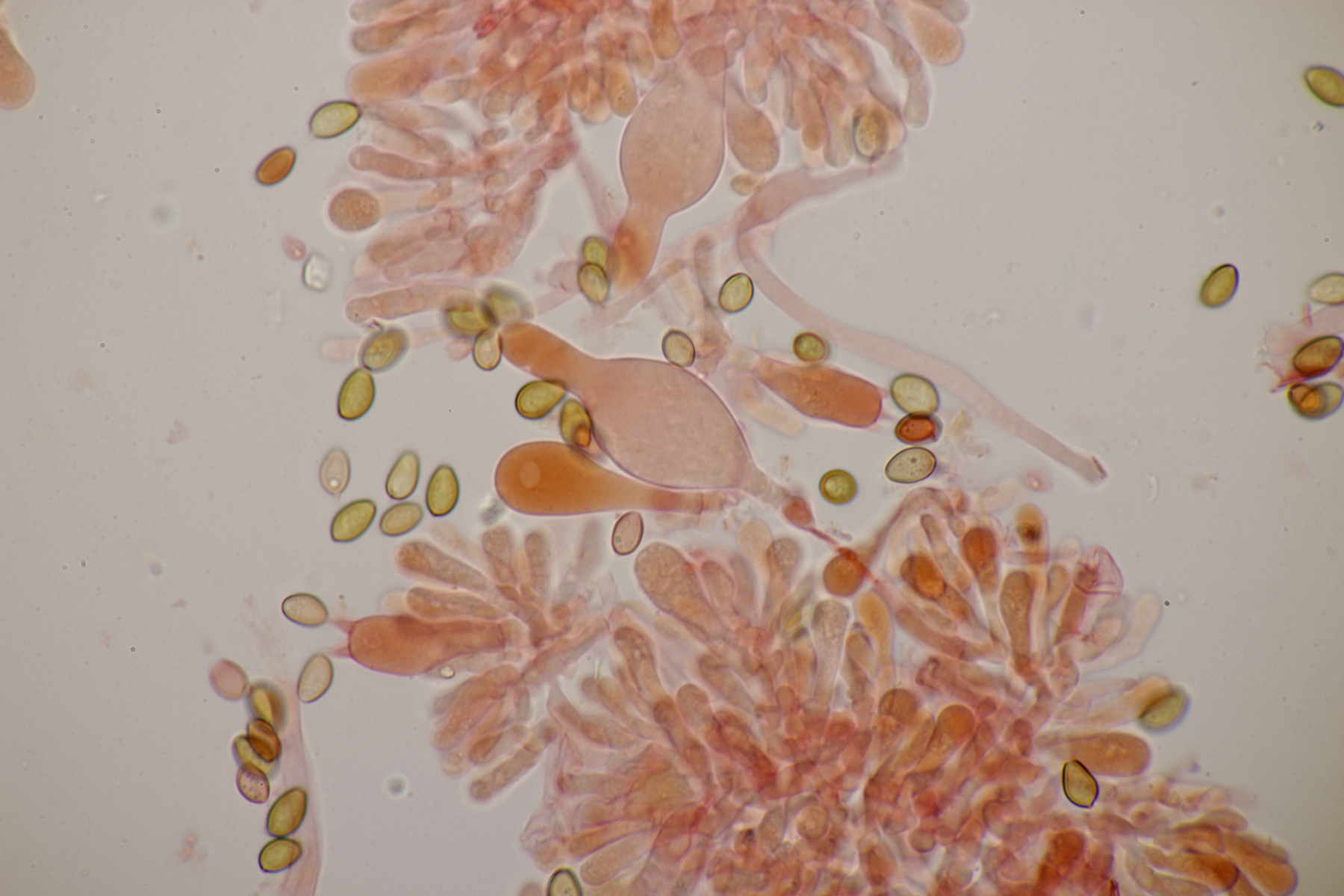 7. Galerina marginata s.l. Sporengröße (8.0+-0.4) µm x (5.0+-0.3) µm, Q=1.6+-0.1 bzw. (7.5-9.1) µm x (4.5-5.5) µm, Q=1.5-1.8