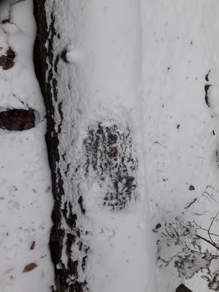 Diehellen Flecken kommen vom Schnee kratzen mit dem Handschuh..