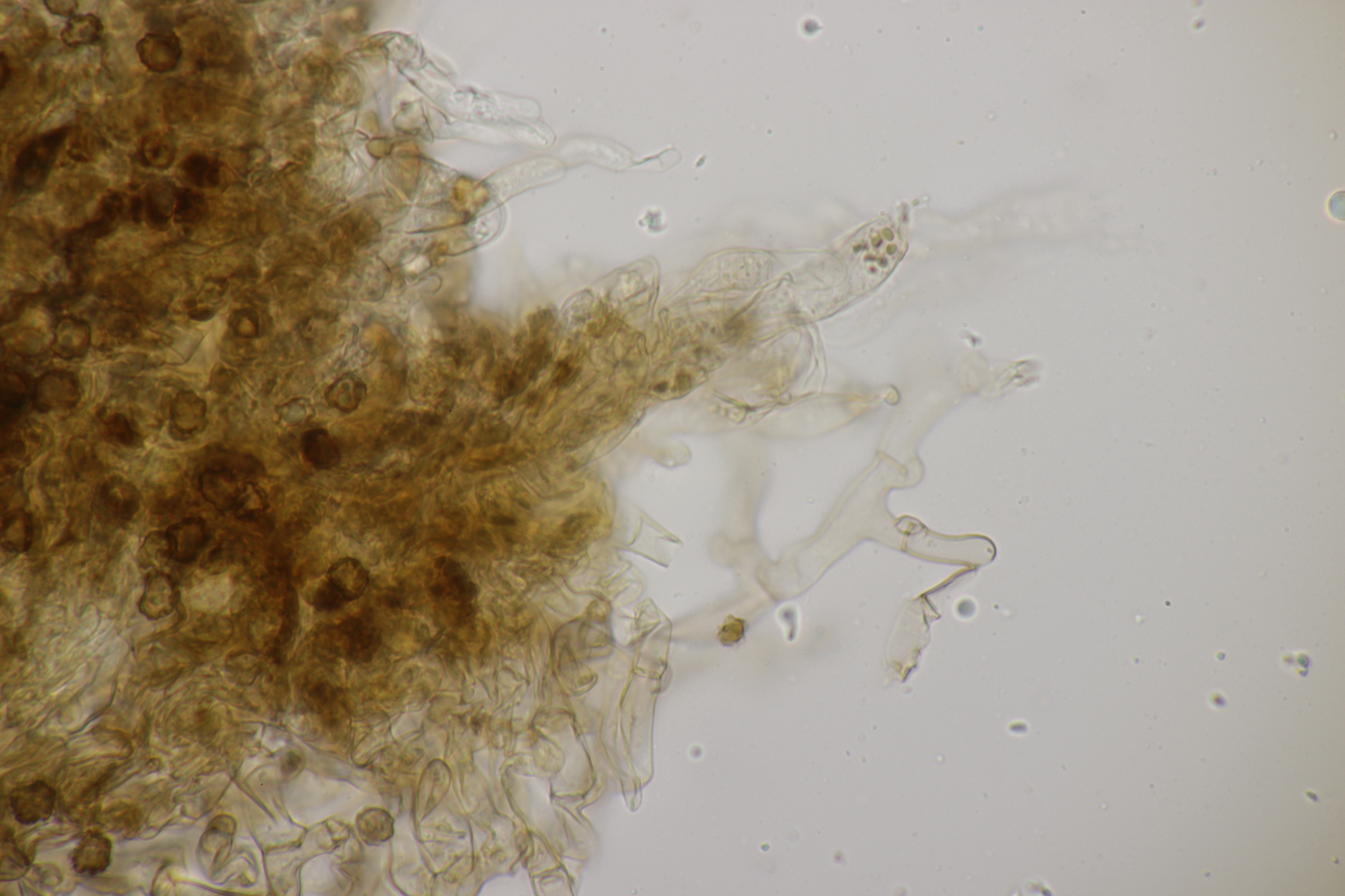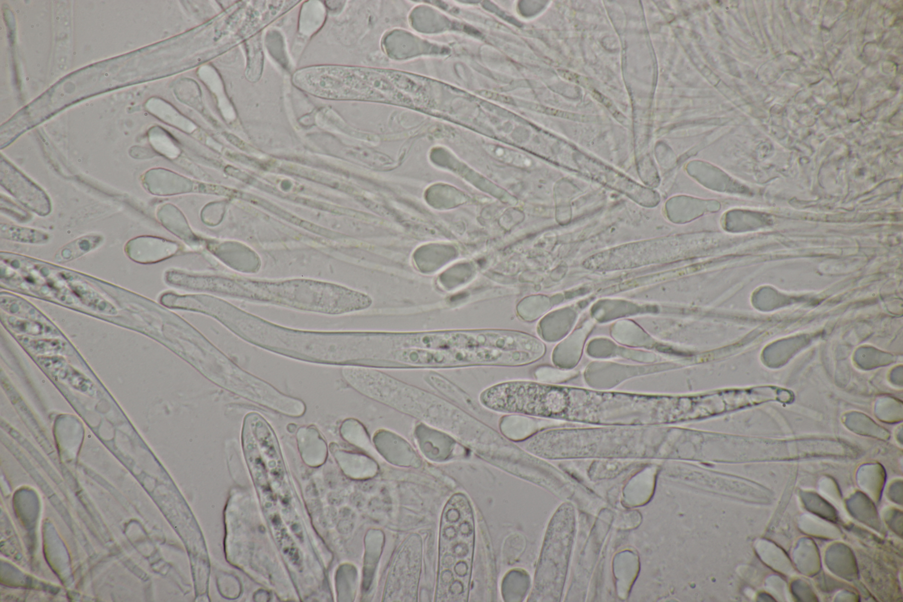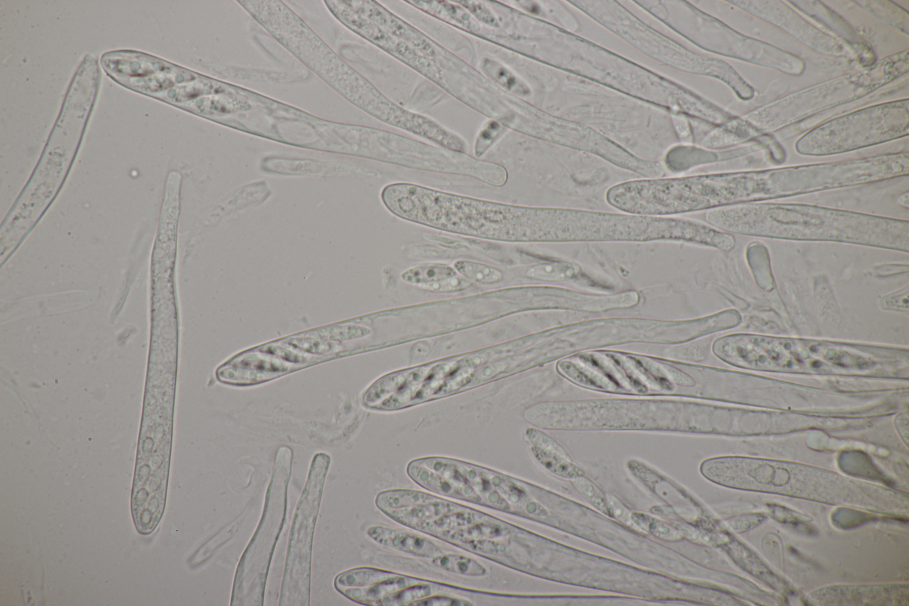 1. An toten Stängeln, vermutlich von Solidago fanden sich diese hübschen Becher mit beeindruckenden Paraphysen, vor allem in Lugol. Hat da jemand Ideen zu?