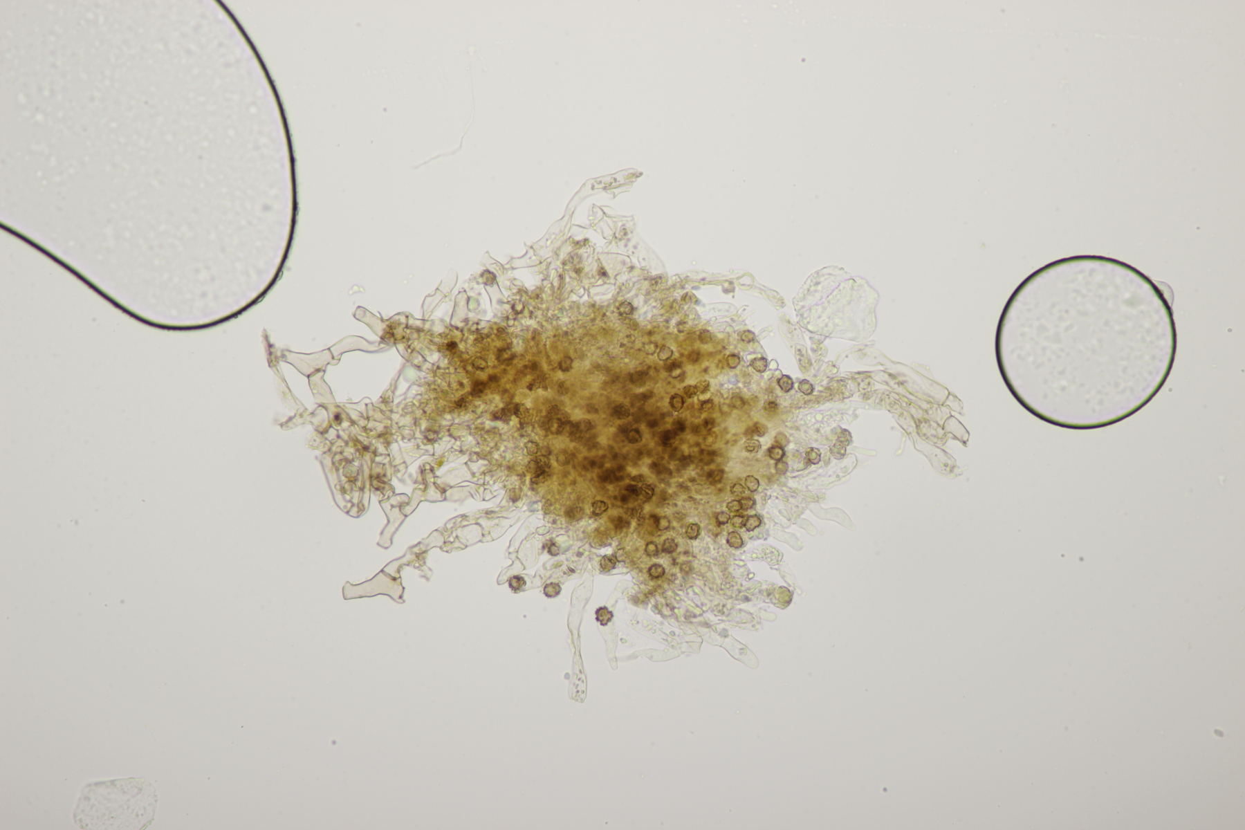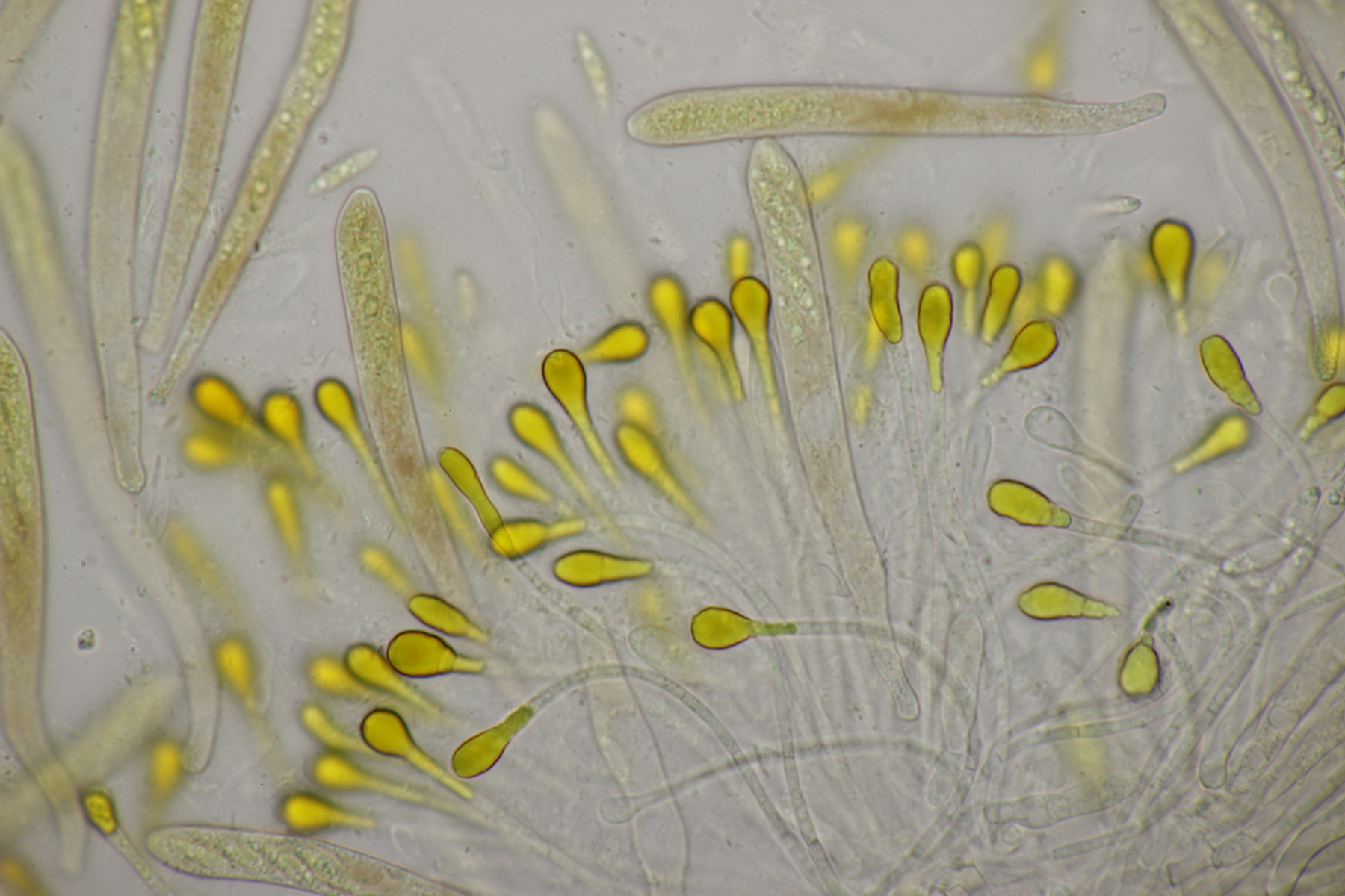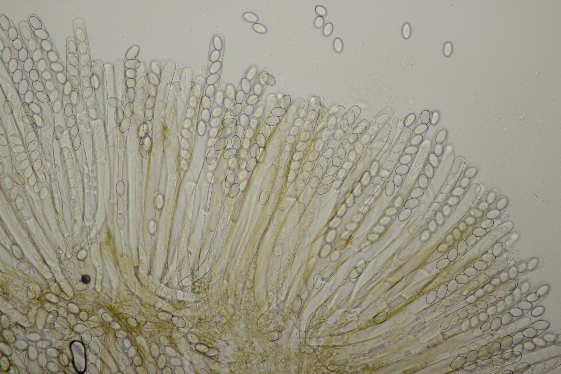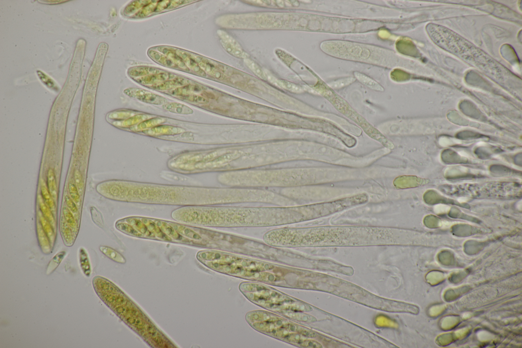 1. An toten Stängeln, vermutlich von Solidago fanden sich diese hübschen Becher mit beeindruckenden Paraphysen, vor allem in Lugol. Hat da jemand Ideen zu?