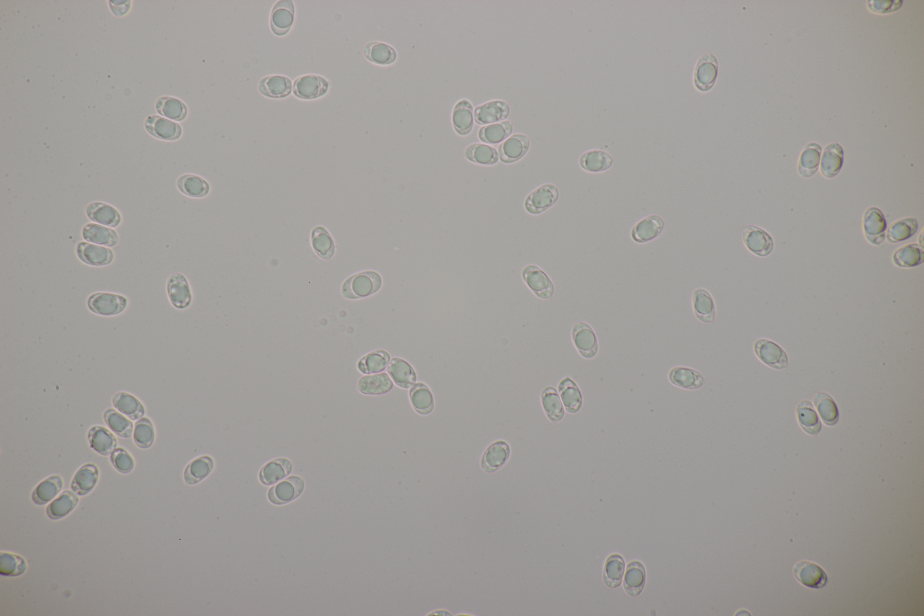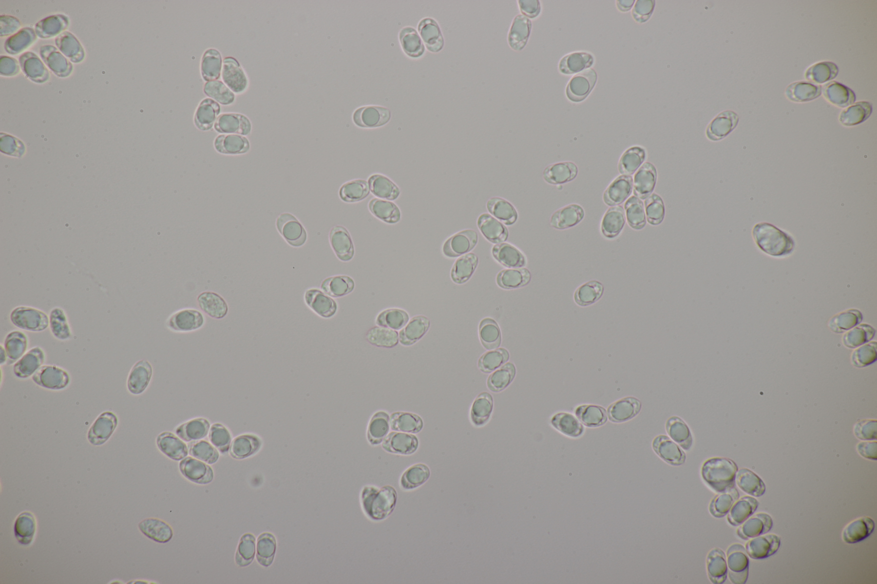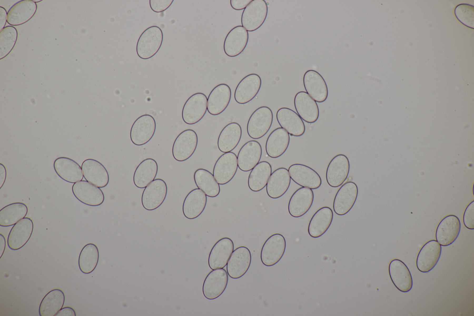 2. Ein weißer Ritterling.... Begleitbäume waren Fagus und Betula, wobei ich Betula für den konkreten Partner halten würde, da die Pilze immer direkt um die einzelnen Birken wuchsen. Der Geruch ist schwer zu beschreiben, teilweise eher süßlich angenehm, aber dann auch mal mit leicht unangenehmer Note. Schnallen waren in der Huthaut an einigen Stellen reichlich vorhanden und an anderen Stellen dann wieder Mangelware. Die Sporen messen (5.5+-0.3) µm x (3.7+-0.3) µm, Q=1.5+-0.1 bzw. (5.0-6.1) µm x (3.3-4.6) µm, Q=1.3-1.6. Tricholoma stiparophyllum? Oder doch was anderes?