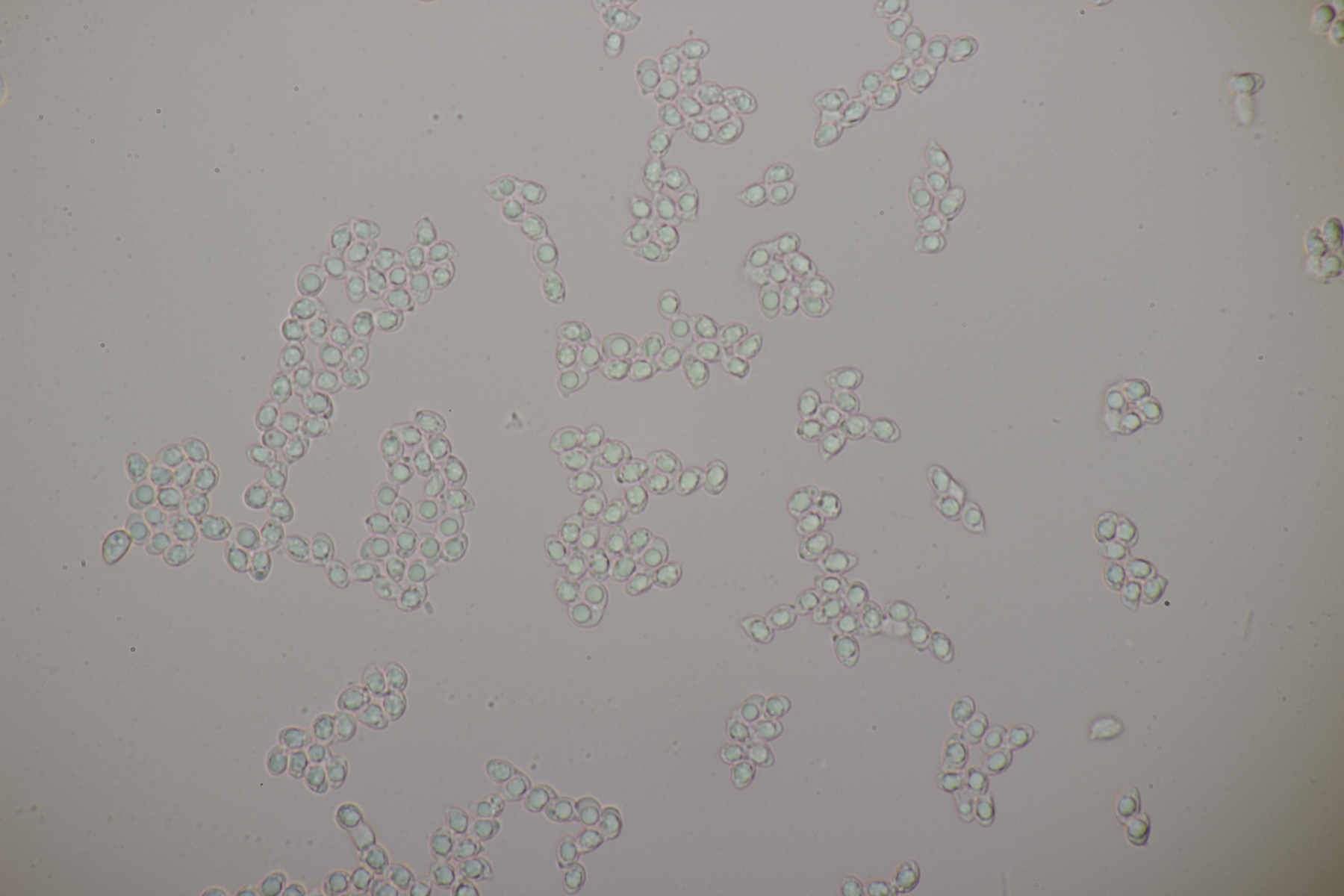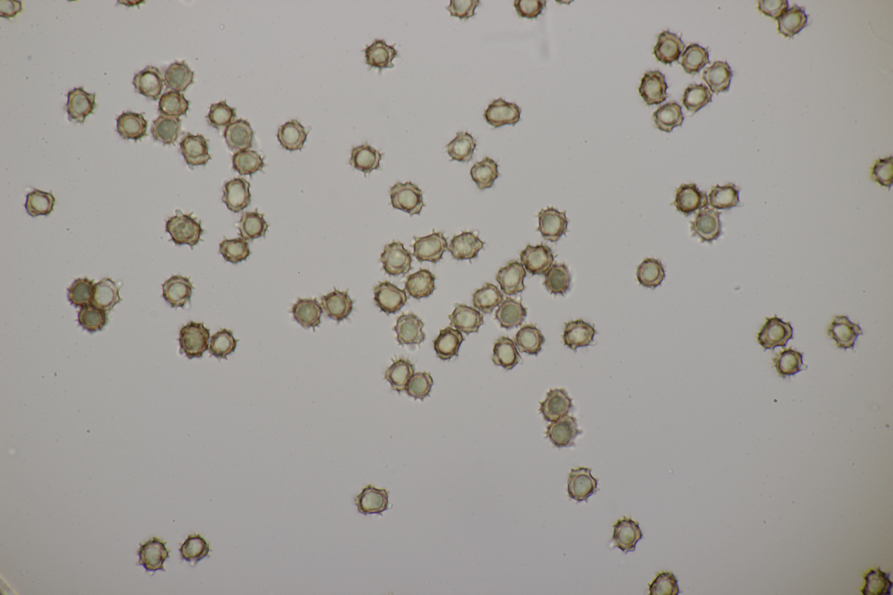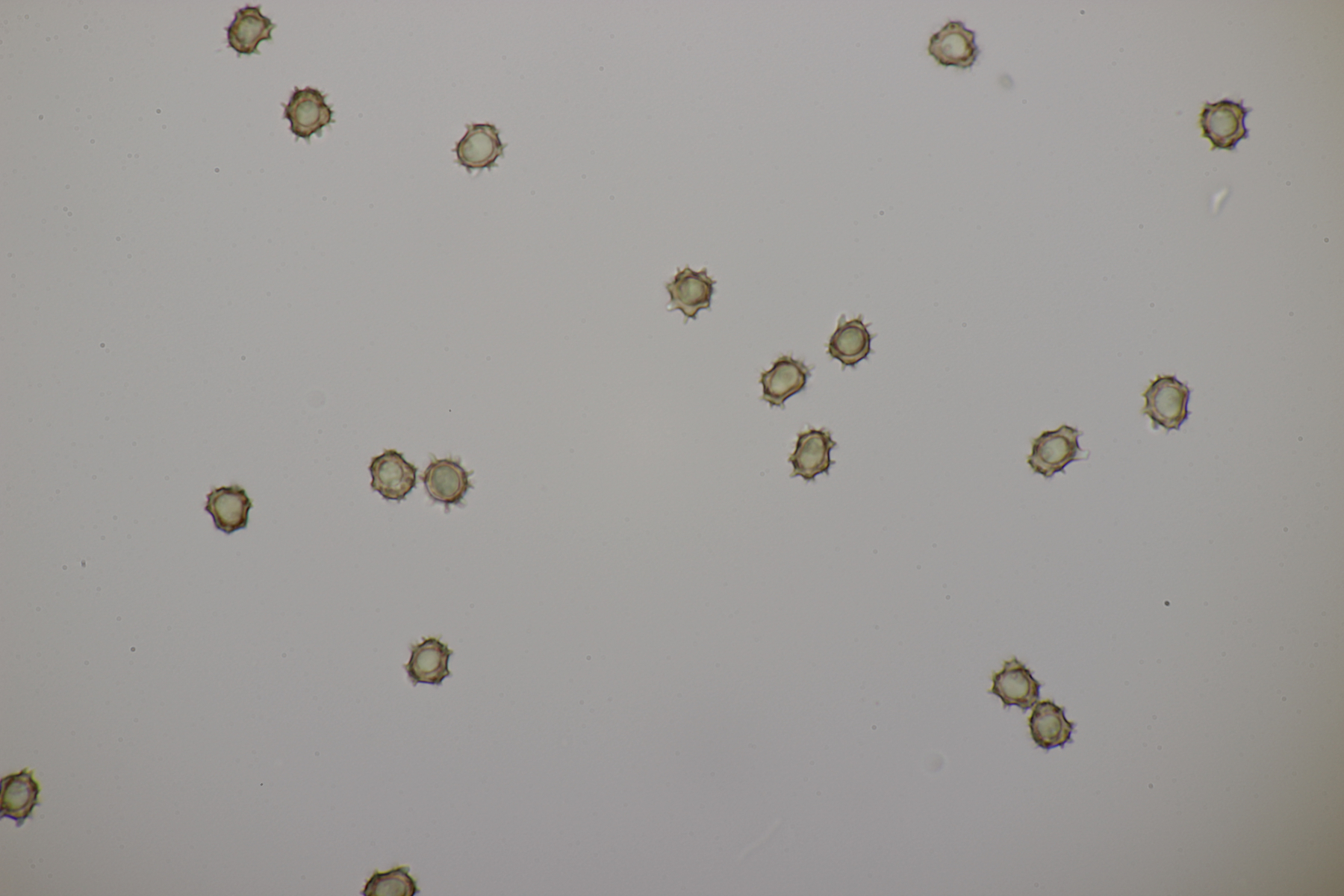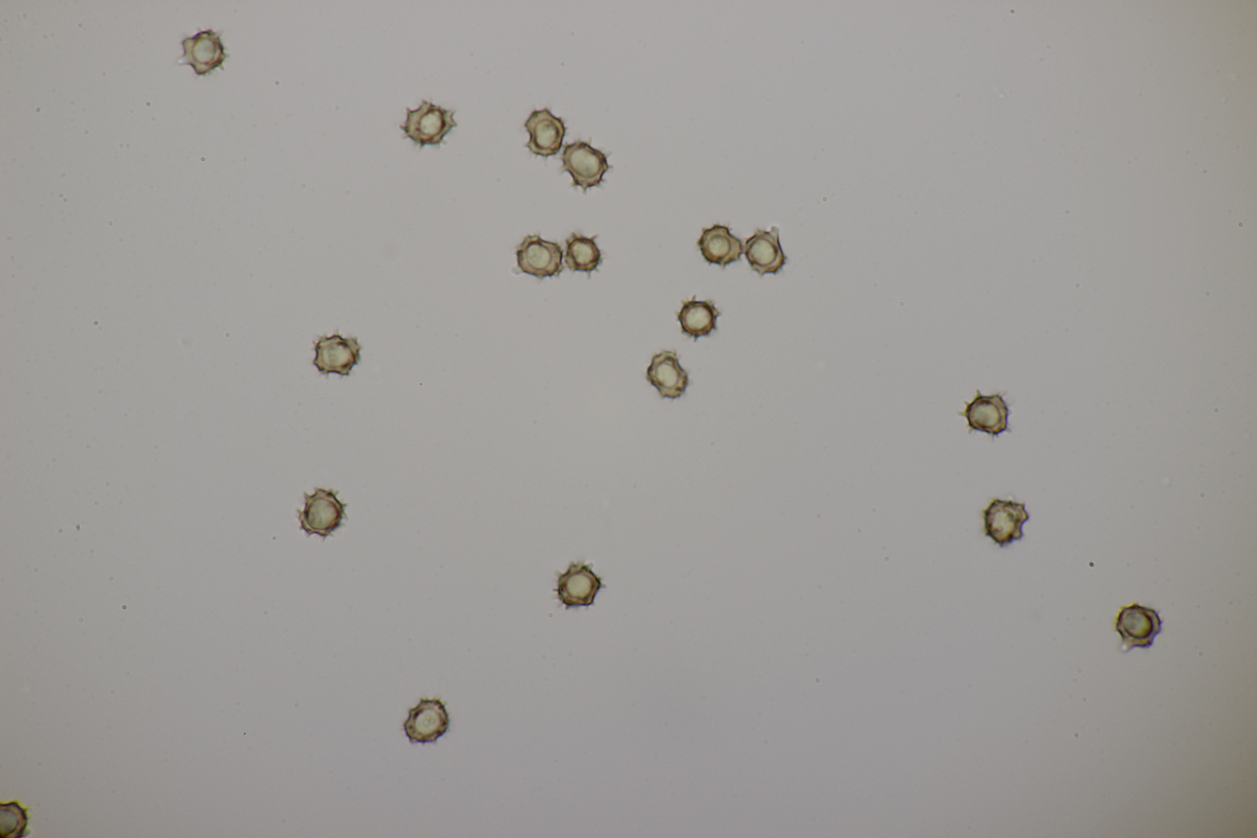 Die Sporen messen (8.0+-0.4) µm x (6.2+-0.4) µm, Q=1.3+-0.1 bzw. (7.5-8.8) µm x (5.6-7.0) µm, Q=1.1-1.4 und sind unregelmäßig geformt. Die Hyphen sind um die 5,5 µm breit. Schnallen sind vorhanden, Zystiden nicht, und das Hymenium ist nicht cyanescent. Wenn ich dann mit Franks Schlüssel arbeite, lande ich am ehesten bei T. umbrinospora, was aber farblich nicht gut paßt. Was sagen die Experten?