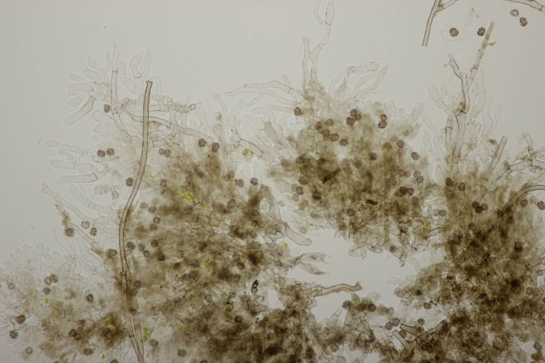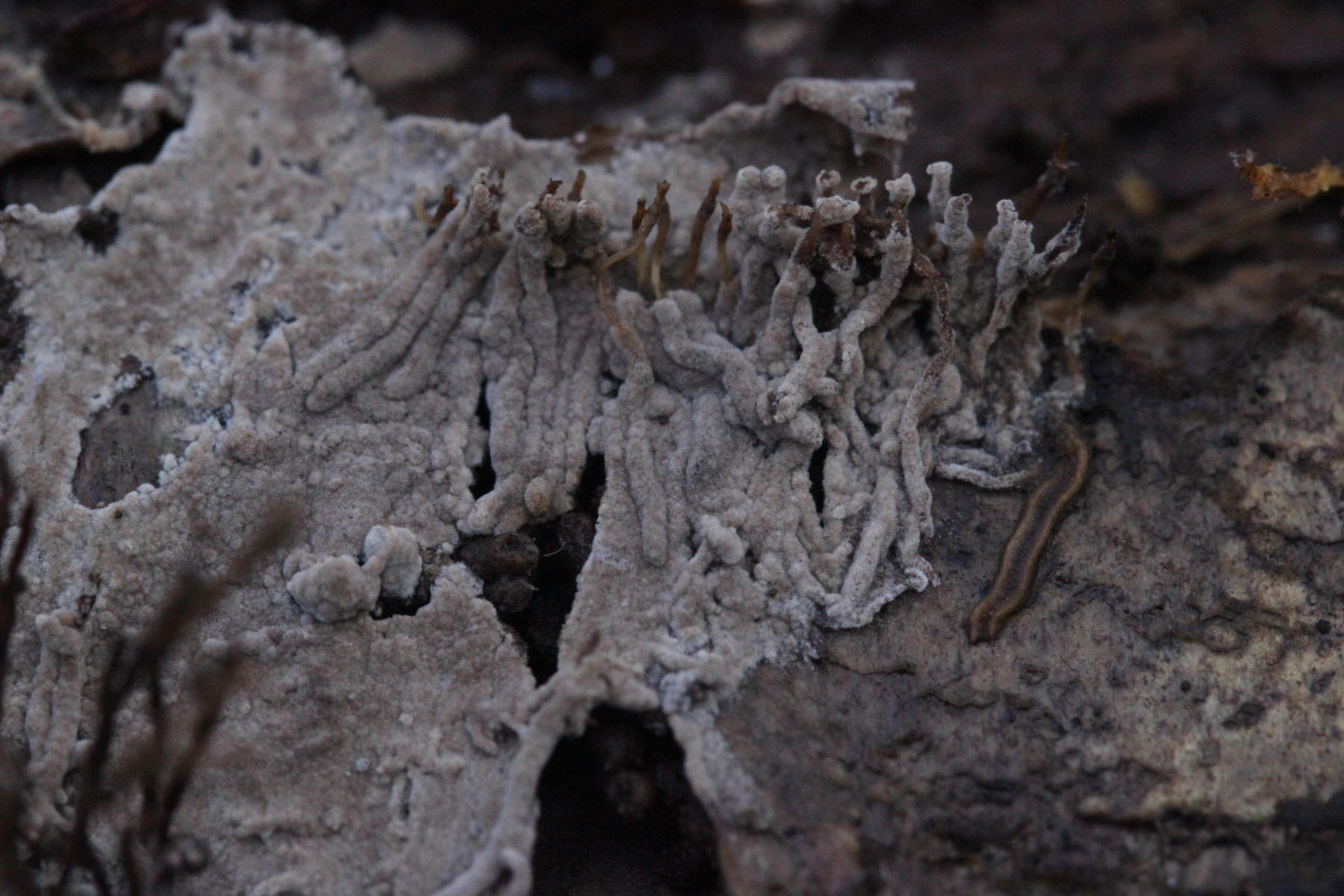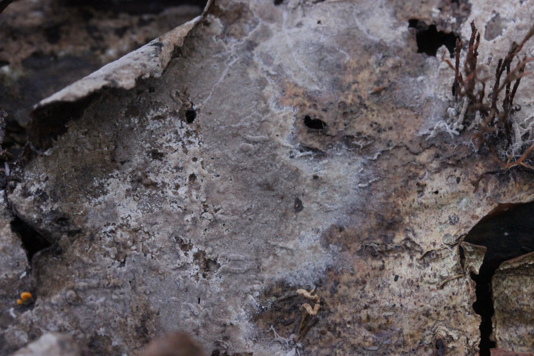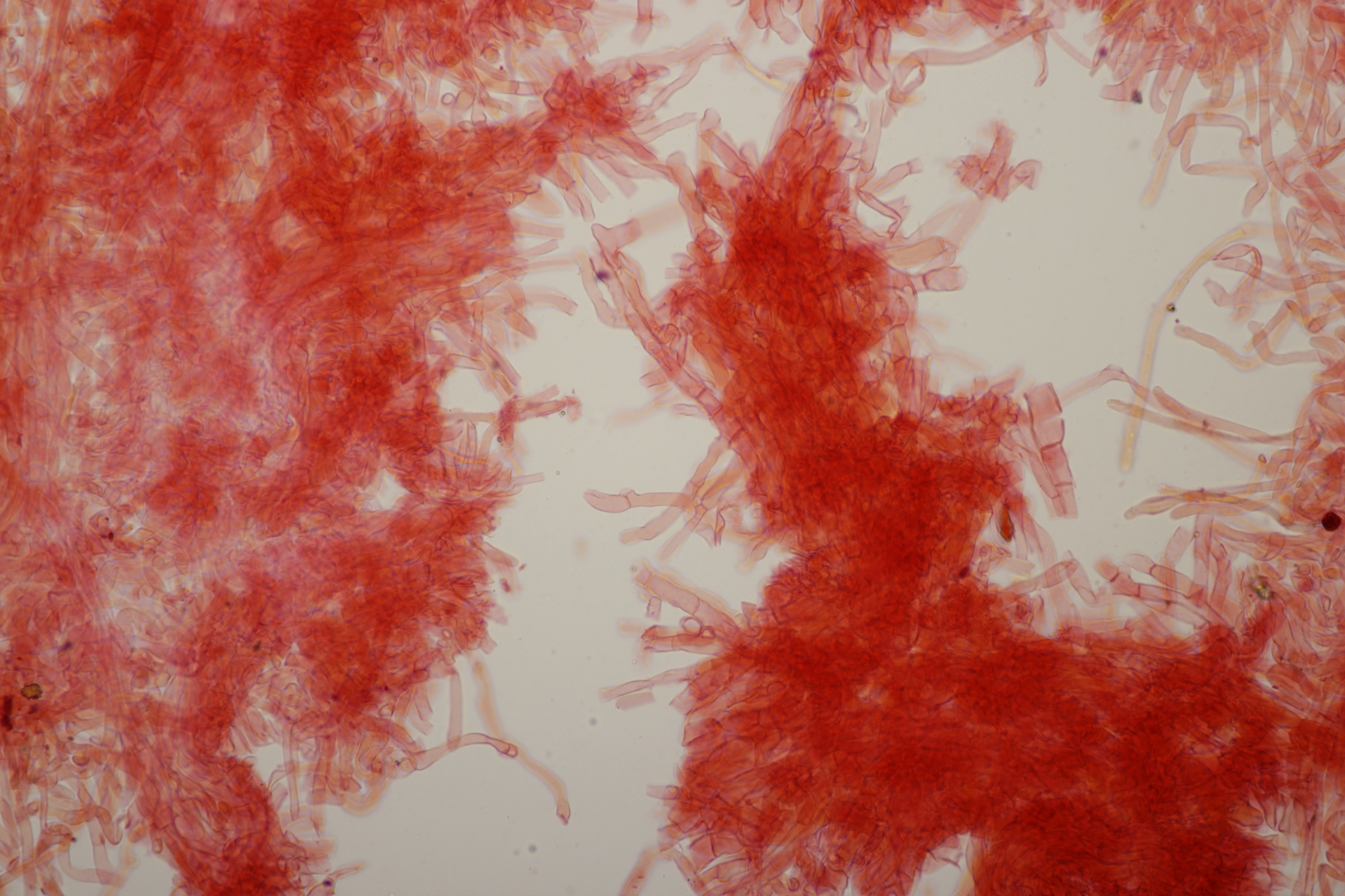 4. Ein Botryobasidium, das im Sporenabwurf leider versagt hat, so daß ich da also keine Sporenmaße habe. Belassen wir es also bei Botryobasidium sp.