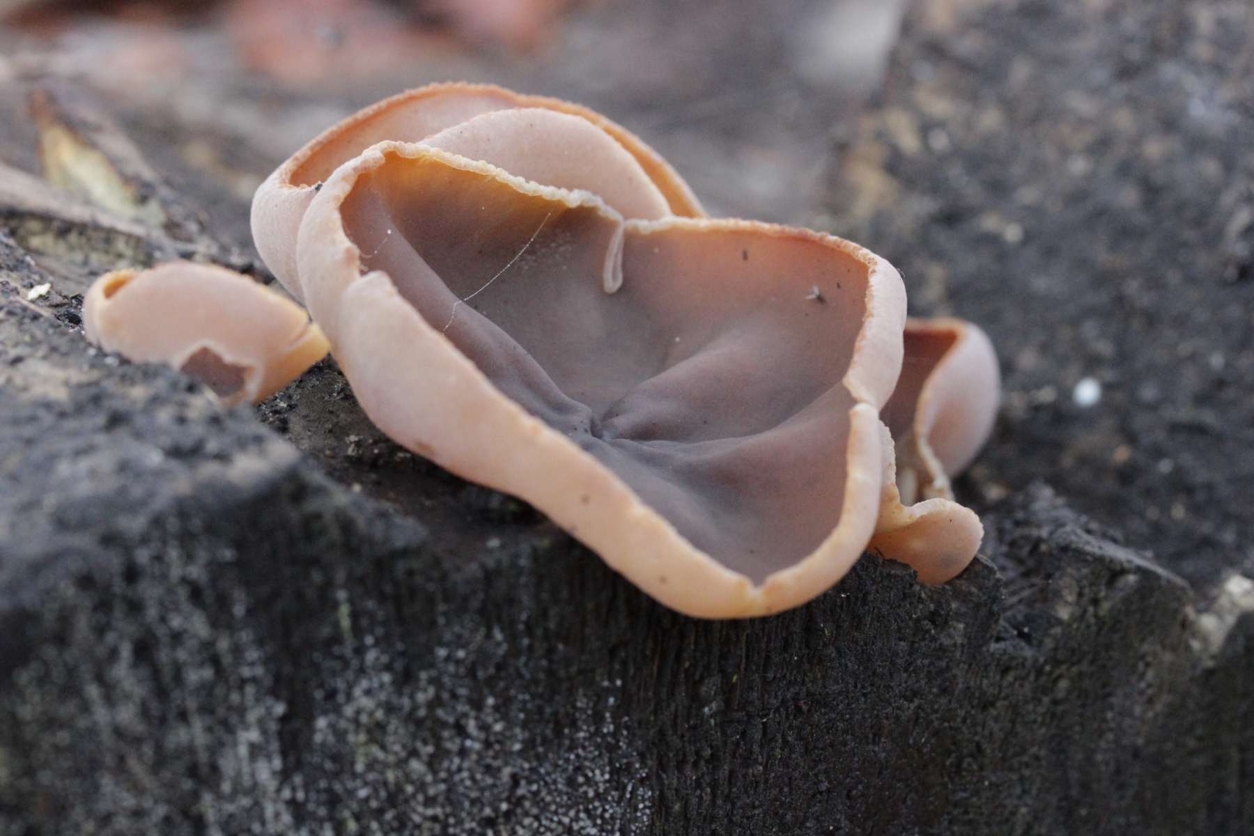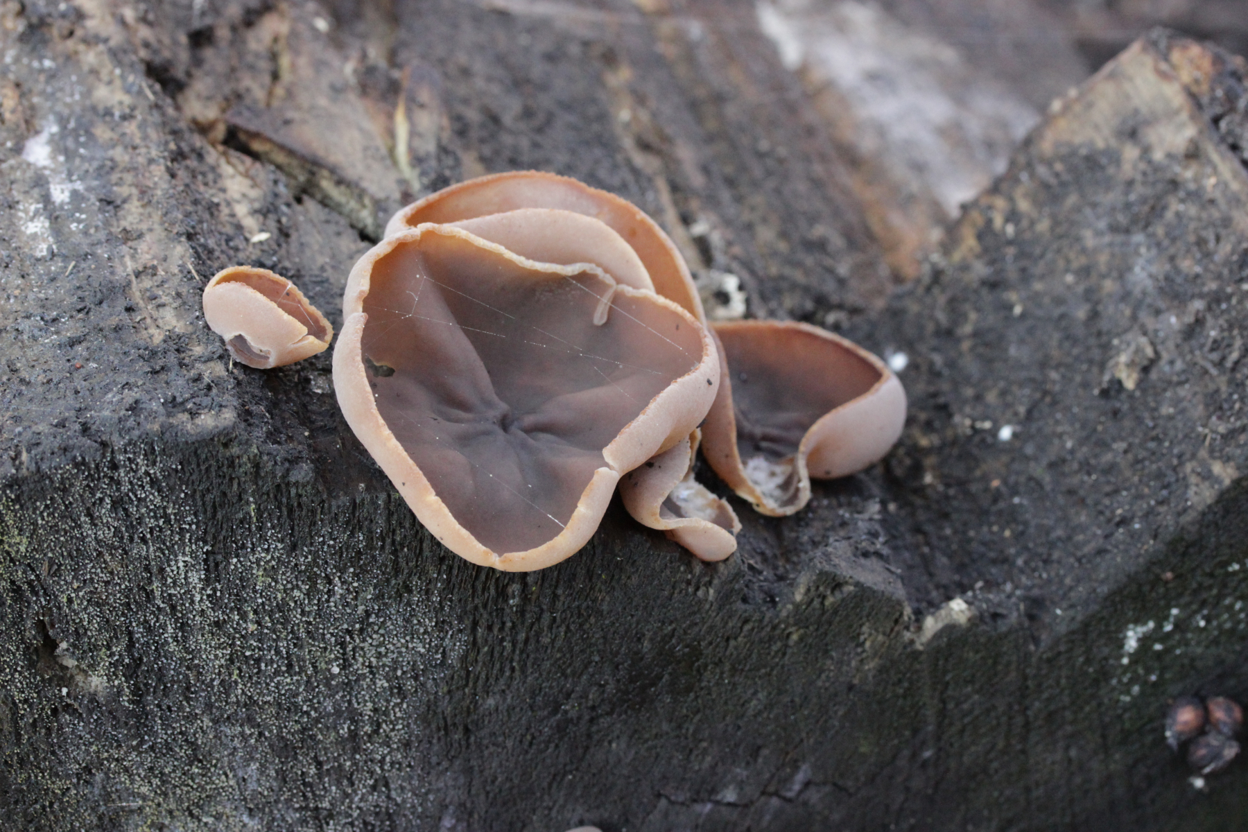 6. Eine Peziza mit glatten Sporen von (15.5+-0.6) µm x (9.6+-0.5) µm, Q=1.6+-0.1 bzw. (14.6-16.5) µm x (8.7-10.5) µm, Q=1.5-1.9 auf Holz. Die Fruchtkörper sind ziemlich groß (>5 cm Durchmesser). Also Peziza varia?