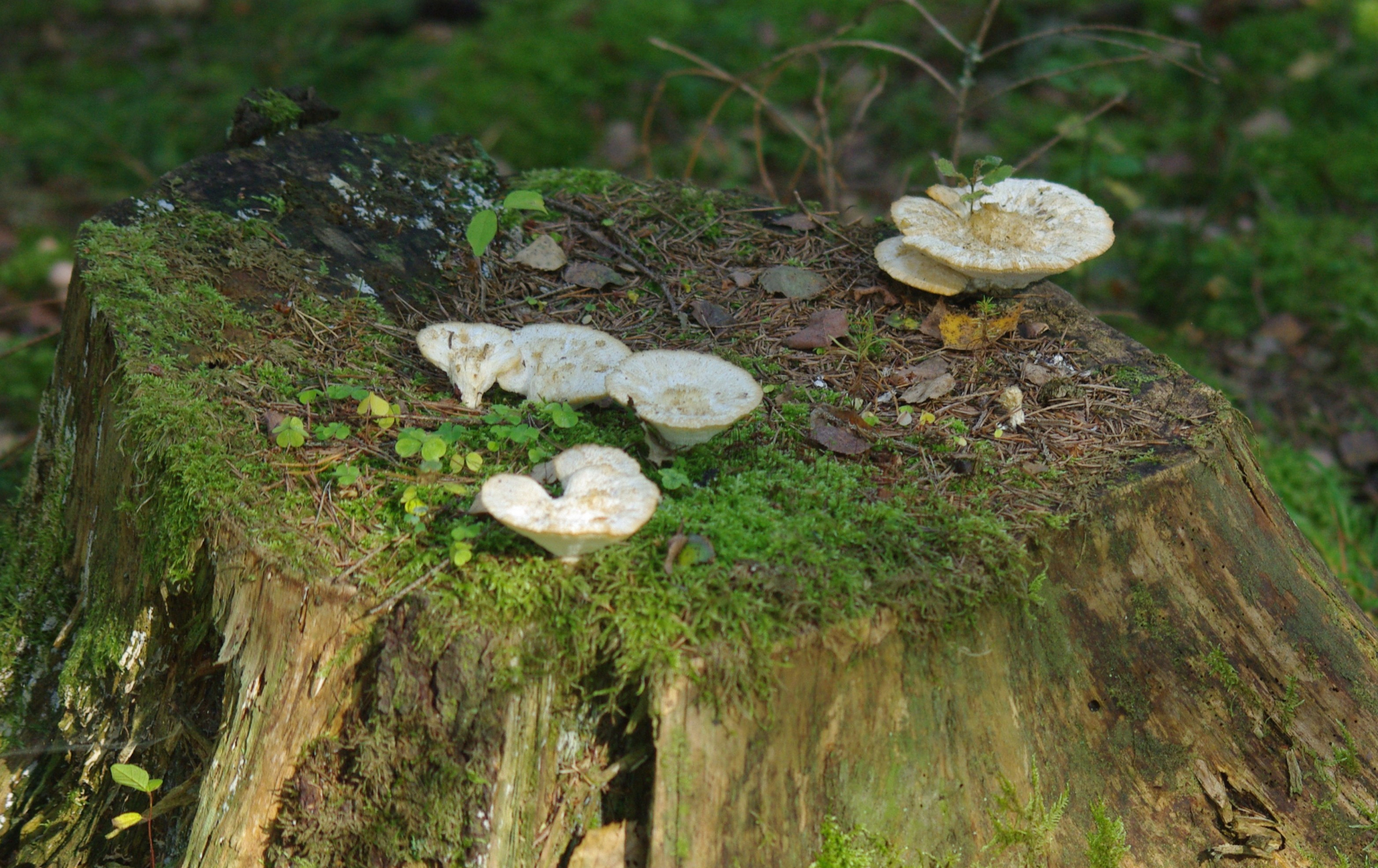 Wenn Climacocystis borealis Fruchtkörper auf wagrechten Substratoberseiten bildet, erscheinen die oft so (pseudo-)stipitat wie hier.