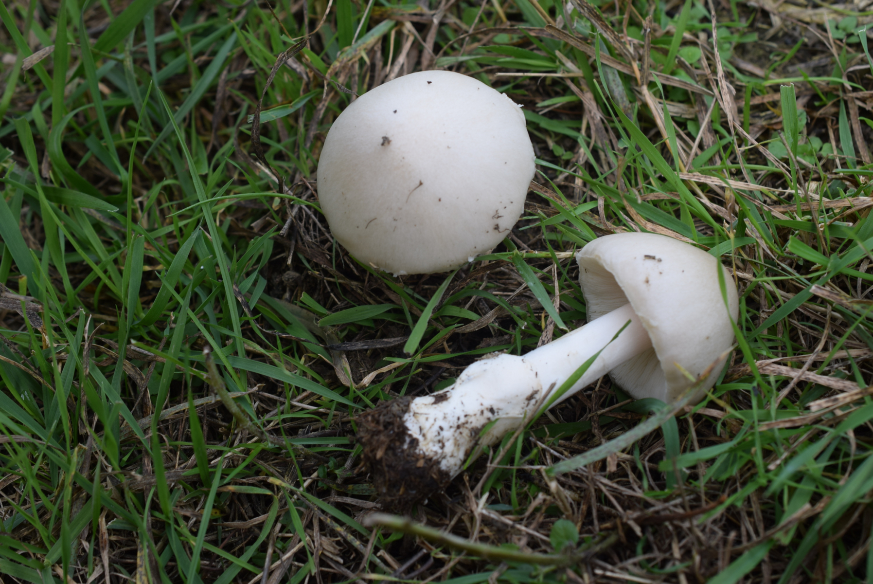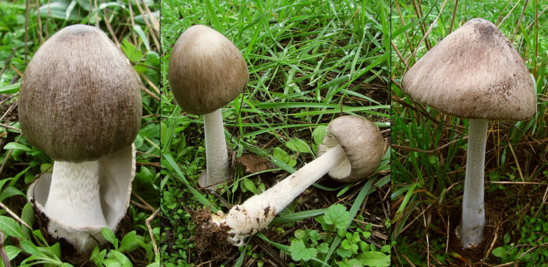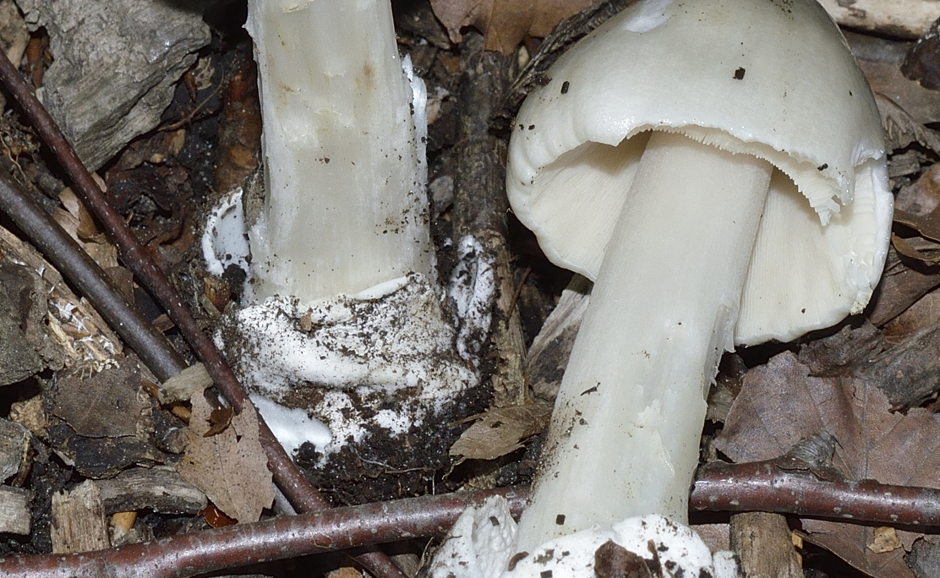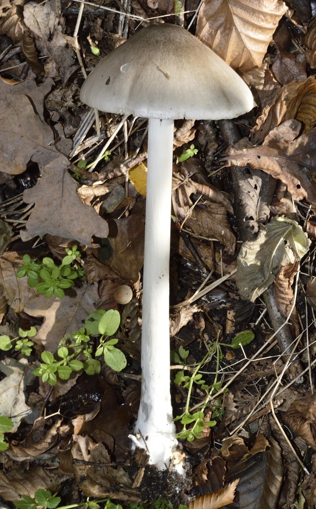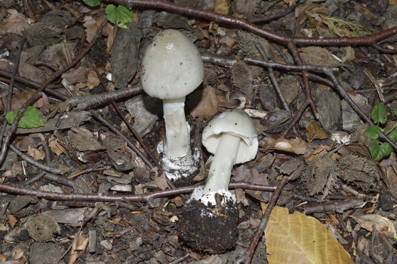 Folgende zwei Gesellen fand ich im Sommer im Laubwald auf besseren Boden bei Buchen. Es sollten Scheidlinge sein. Ich hatte bzw. habe bei diesen zwei Exemplaren zwar eine Vermutung aber wollte ersteinmal mal eure Meinung dazu hören. Die Kappe war seidig-glänzend und grauweisslich, in der Mitte dunkler und zum Rand heller. Stiel, Lamellen weißlich mit weißer Volva.