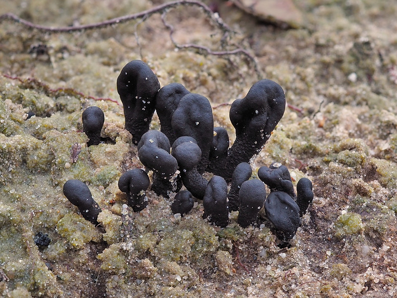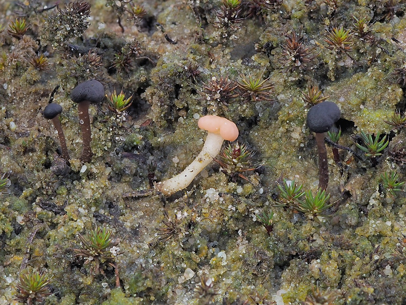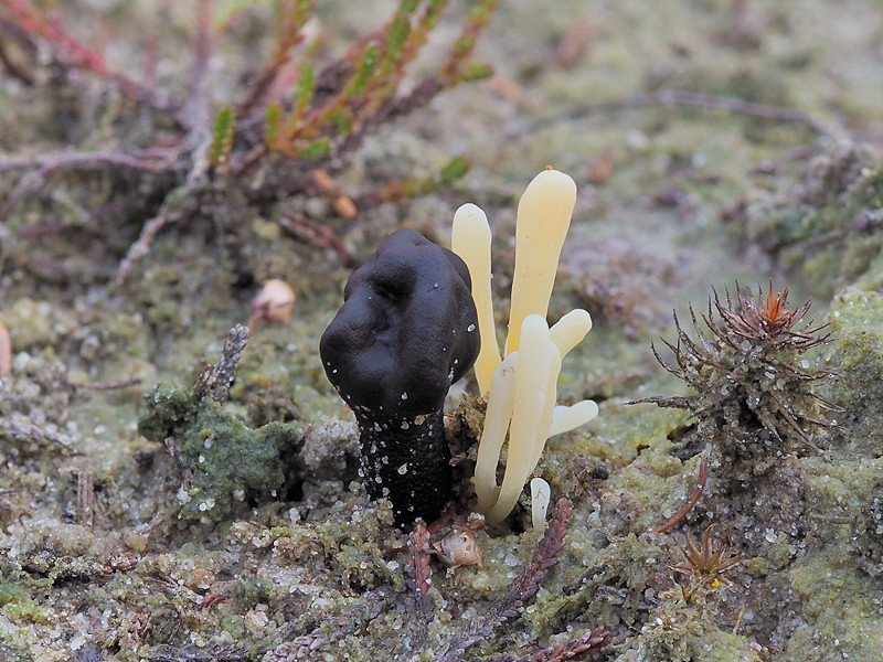 Sand-Erdzunge, hier zusammen mit der Heidekeule (Clavaria argillacea)
