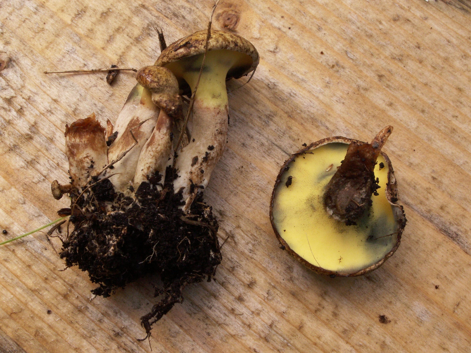 Ein büscheliges Wachstum vom Erlen-Grübling (Gyrodon lividus) an einer feuchten Stelle im Mischwald. Ich habe meistens Einzelfruchtkörper entdeckt, doch nie solch ein Büschel. Das Bild ist schon etwas älter aber es war ein interessanter Anblick einer geschützten Pilzart.