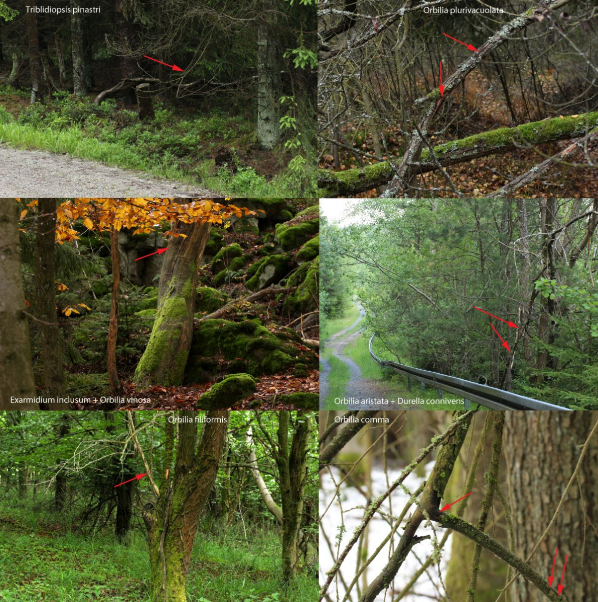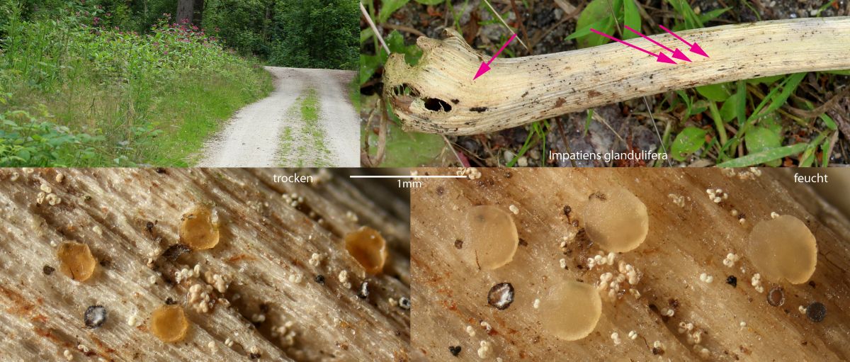 Es geht dabei primär um Trockenstandorte, die regelmäßig austrocknen und daher von Mykologen wesentlich seltener beachtet werden als "herkömmliche", also feuchte Habitate. Primär fündig wird man an ansitzenden, toten Ästen und Stämmen jeglicher Dicke, berindet oder unberindet. Auch halb abgebrochene, frei hängende Pflanzenteile sind hier sehr ergiebige Substrate. Fündig werden kann man hier ganzjährig, auch wenn es in Trockenphasen bei bestimmten Arten schwierig wird diese zu sehen, selbst mit Lupe, da sie so klein und unscheinbar im Trockenzustand sind. Neben holzigen Substraten sind genauso alte, ca. zweijährige Krautstängel, die ebenfalls gerne auch mal gänzlich trocken fallen dürfen, interessant. Für Orbilien muss man da allerdings etwas Zeit investieren, bis man fündig wird.