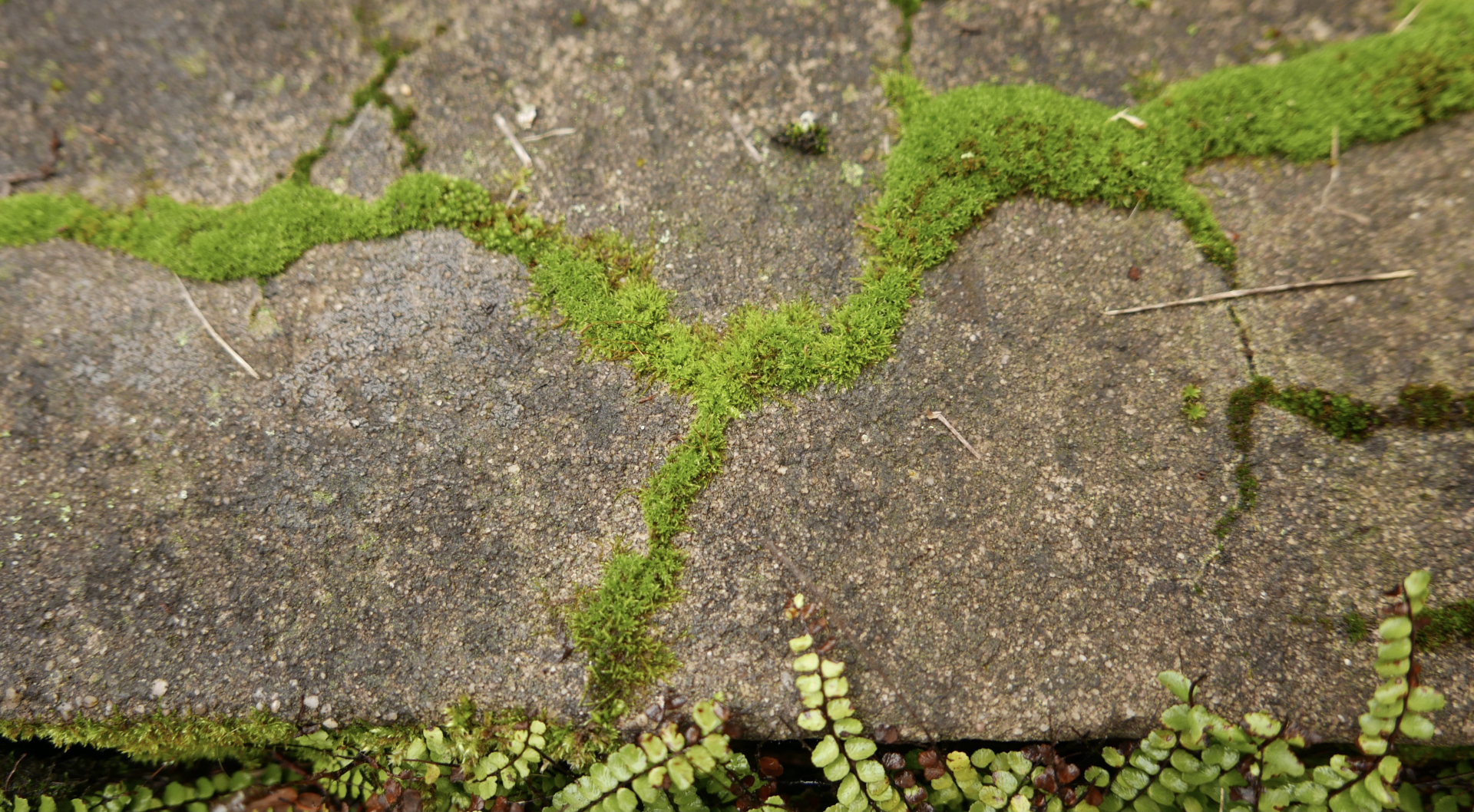 Seitdem besiedelt er die Treppe, die Mauer und die Bruchsteinmauer, die ich wiederum mit "reifen" Blättern des Farns beimpft habe.