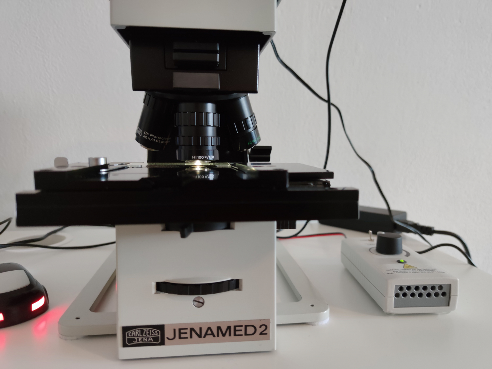 Das Carl Zeiss Jenamed 2 wurde in den 1980er Jahren produziert und hat bereits unendlich korrigierte Objektive der CF-250 Klasse. Dies waren die Spitzenobjektive von Carl Zeiss Jena.