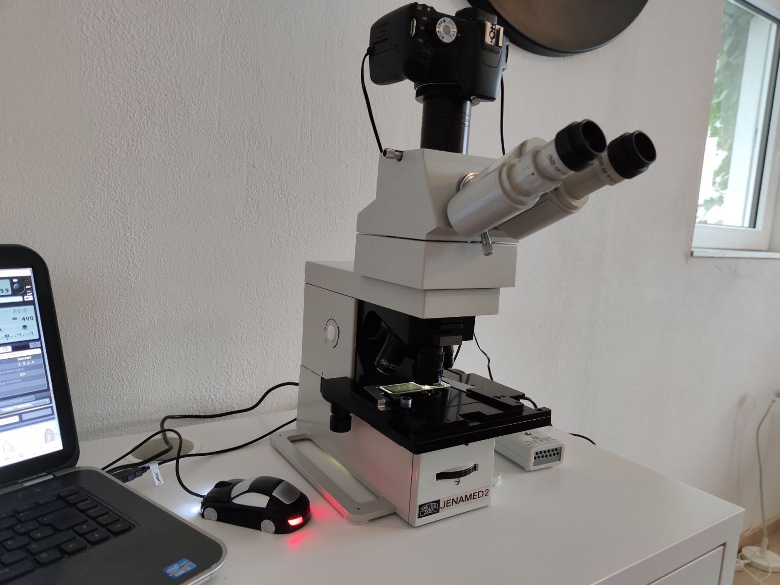 Preisvorstellung für dieses komplett ausgestattete Jenamed 2 inkl. Fotoadaption, Canon EOS 500D und LED-Beleuchtung sind 950 € bei Abholung. Standort ist westliches Sauerland. Versandkosten müsste ich gucken. Versand auf jeden Fall in zwei Paketen.