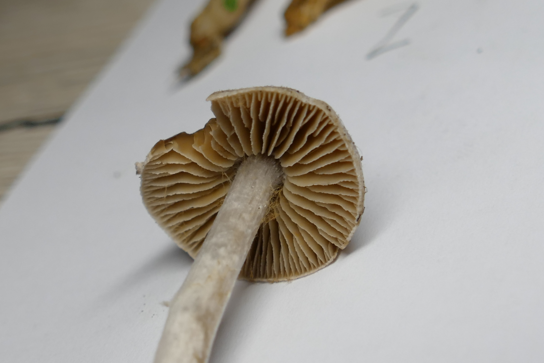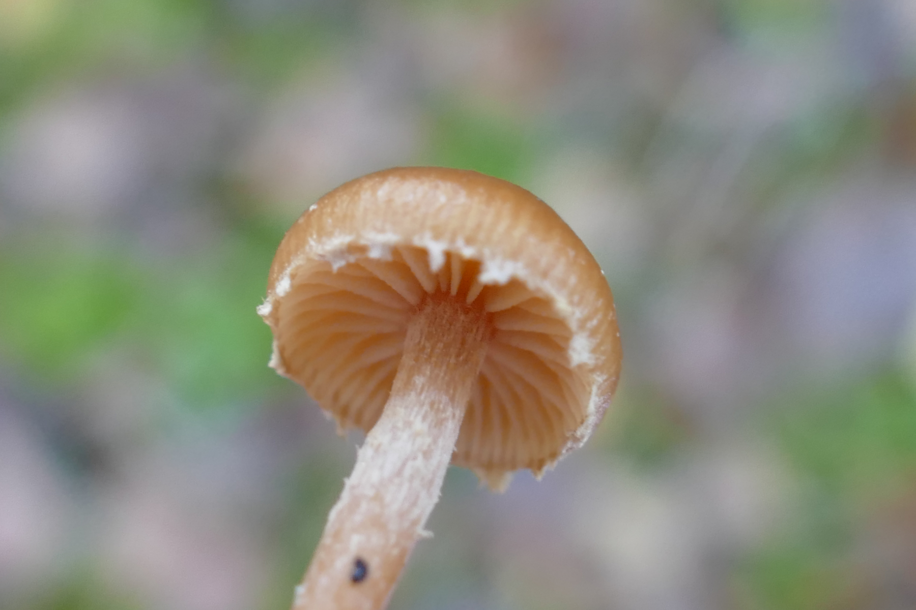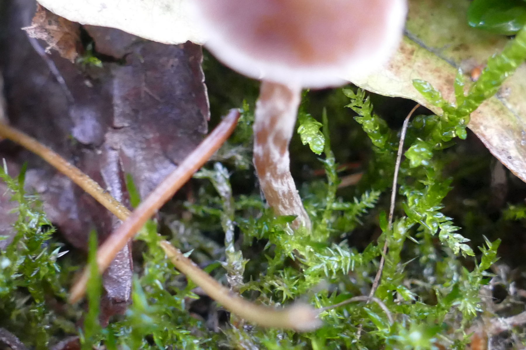 Der Stiel war sehr dicht überfasert/überhangen mit weißem Velum
