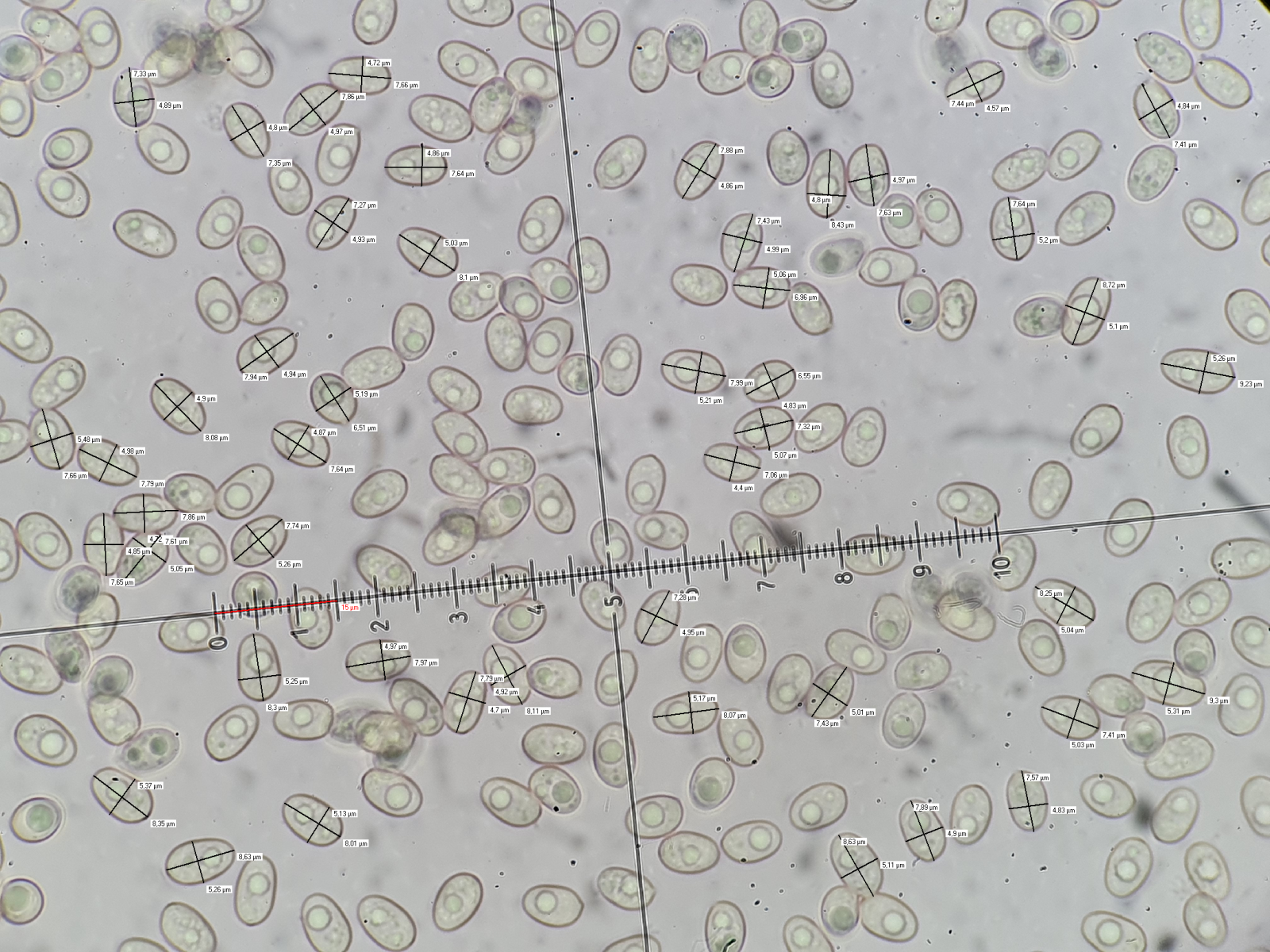 • Hallo Beli, vielleicht hast du recht und ich habe mit "passen so gar nicht" etwas übertrieben. In Fungi of Temperate Europe ist der Quotient mit 1,5 angegeben. Aber von den Größenangaben der Sporen in anderen Quellen könnte es vielleicht doch passen ...