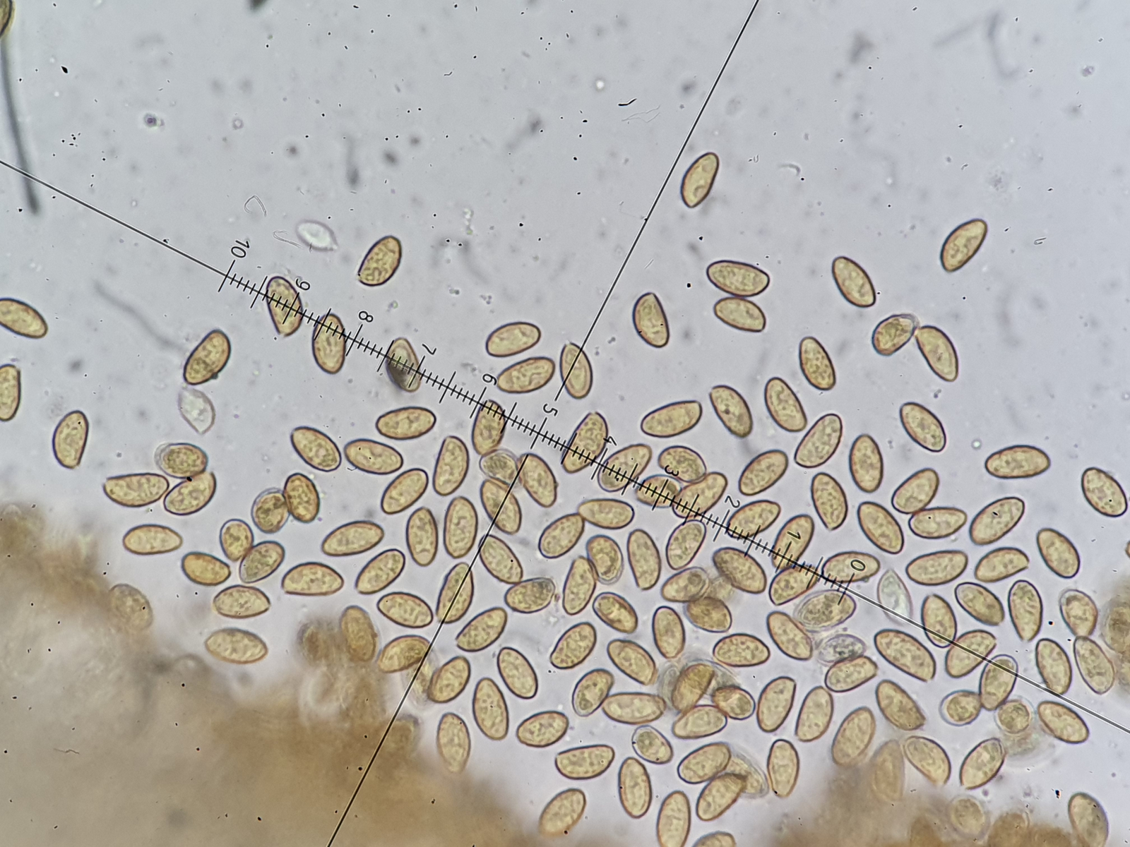 tatsächlich passen die Mikromerkmale sehr gut auf Tubaria furfuracea. Sonst kenne ich die eher mit ausgebreitetem Hut und so jung mit solch einem Behang hatte ich die erinnerlich auch noch nicht in der Hand, obgleich ich Tubaria schon oft in der Hand hatte. Aber vielleicht habe ich da schlicht auch nicht so genau hingeschaut ...