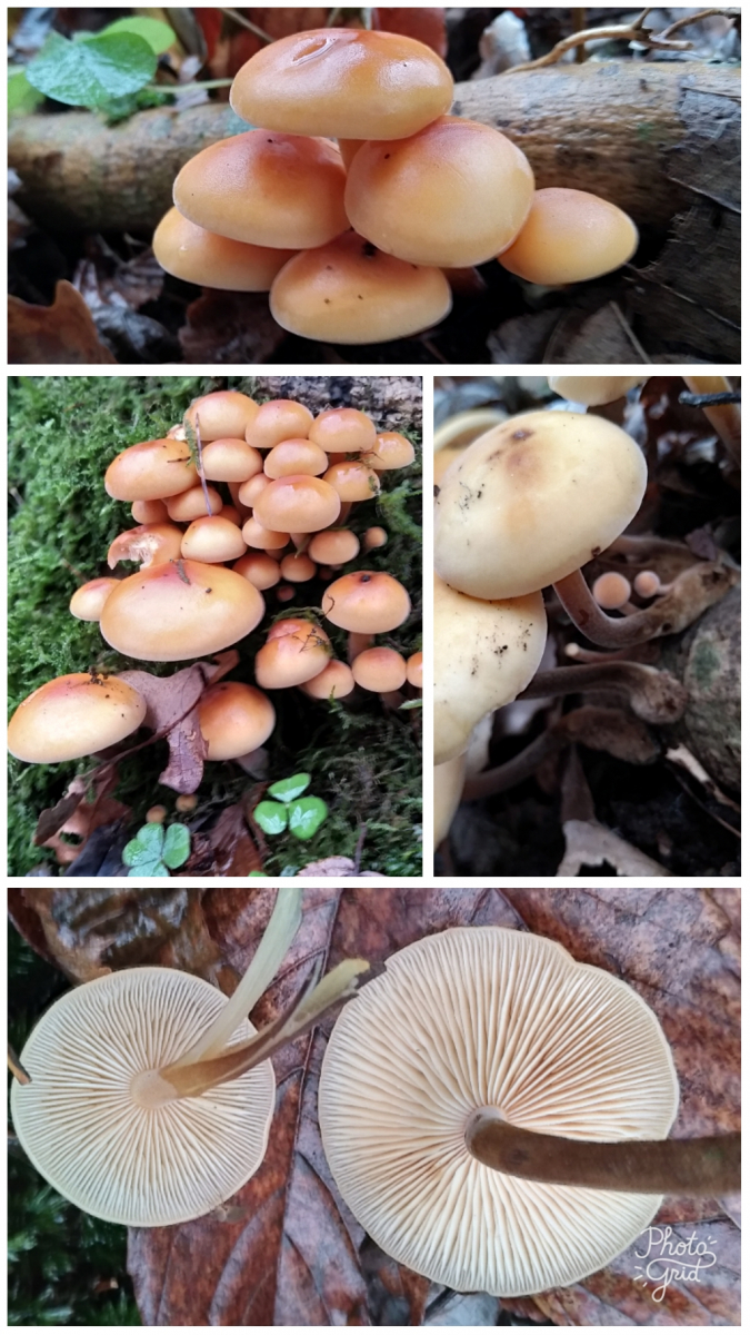 Das Sammelsurium der Fruchtkörper auf der Bildcollage ist leider nicht wirklich beurteilbar. Man müsste jeden Fruchtkörper in jeder Ansicht sehen (von oben + von unten + von der Seite), und auch an die Stiele so nah ran, daß man den feinen Flaum beobachten kann. Stiele sollte man auch niemals abschneiden, wenn man Fruchtkörper zur Bestimmung mitnimmt, sondern immer ganz und mitsamt Stielbasis einsammeln.