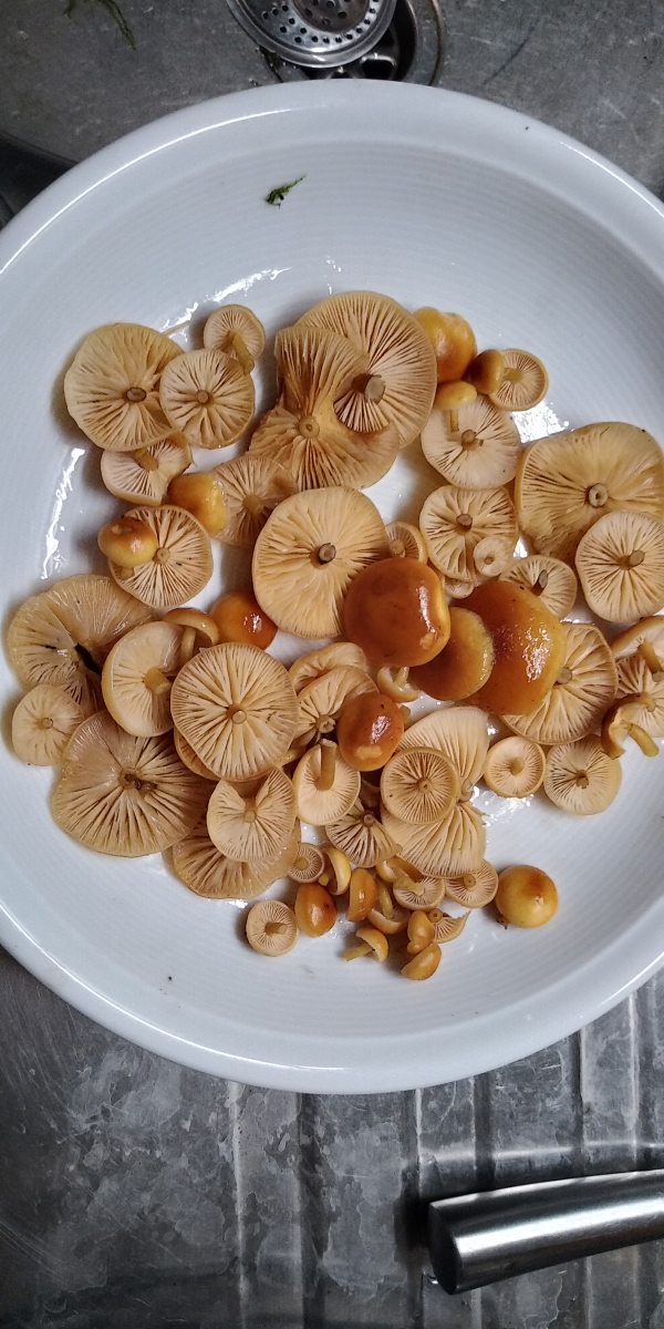 Heute beim Pilze finden neben sehr vielen Trompetenpfifferlingen zum ersten Mal in 40 Jahren ( hoffentlich) den Samtfußrübling gefunden. Letzte Woche hatten wir hier den ersten Frost.