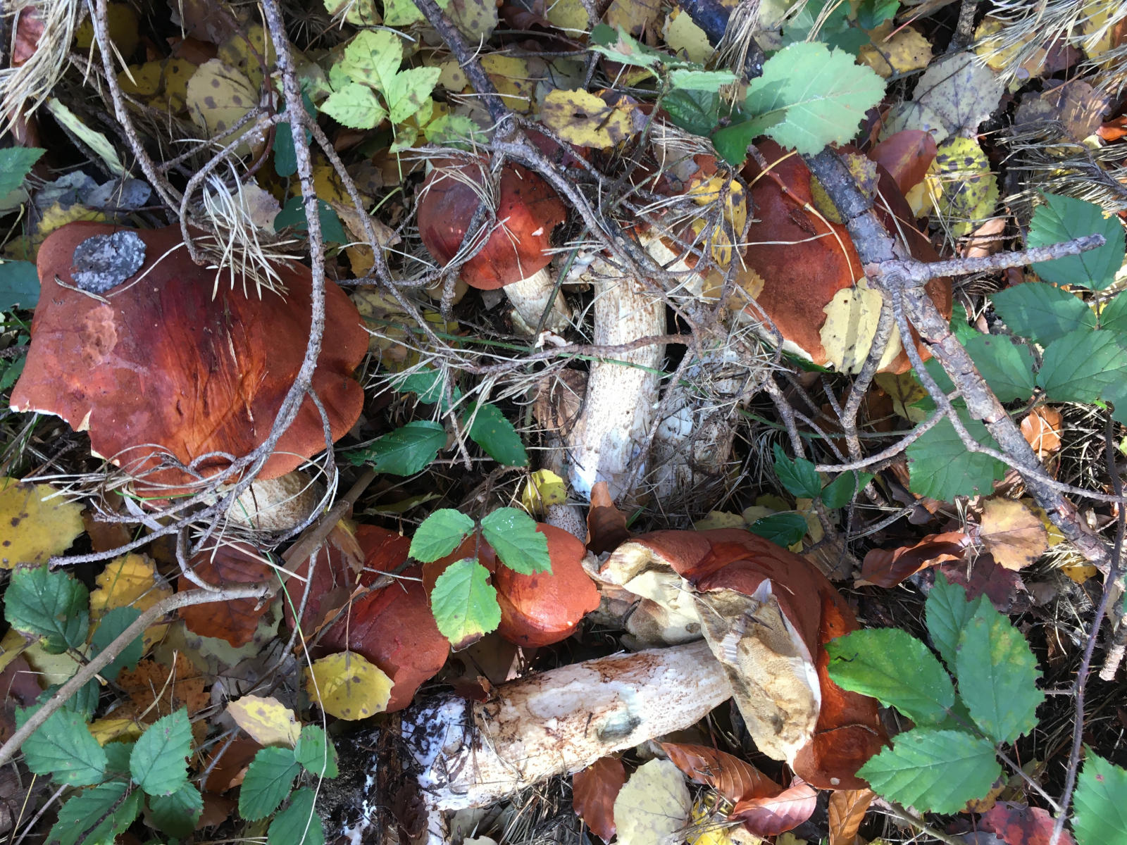 f) ah ja und hier habe ich keine Ahnung, ich stell das aber auch mal zu den Rittern, scheint mir am ehesten dahinzugehören: leider schon etwas drüber, der muffige Geruch wohl altersbedingt, diesmal waren aber außer den üblichen Kiefern auch Buchen und Birken mit im Spiel. Die Teile waren außerdem riesig vgl die Buchenblätter: Edit: Schmarrn! Russula spec. Danke fürs anschauen der Bilder Pablo & Beli