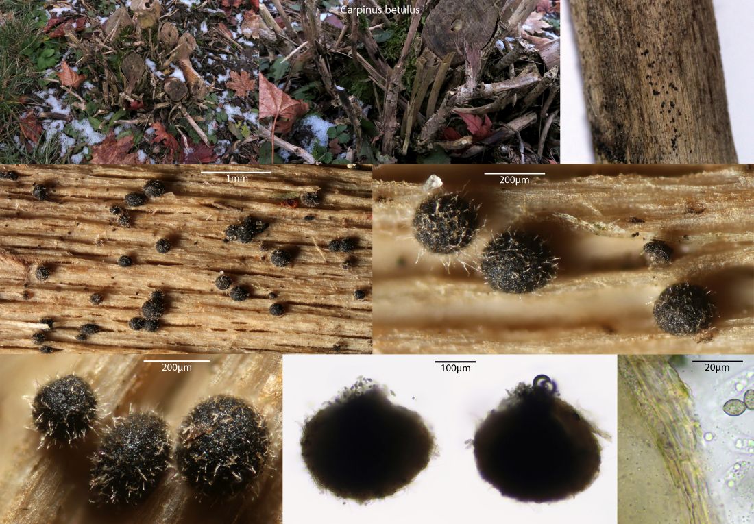 Du hast Recht, das muss Sambucus sein. Es war zwar eine Hainbuchenhecke, aber da scheint dazwischen früher unbemerkt auch etwas Holunder gewachsen zu sein. Jedenfalls ein paar Stängel und der an dem die Pilzchen wuschen gehören dazu. Da war ich wohl zu betriebsblind, weil ich da allenfalls noch mit Ahorn gerechnet hätte, aber nicht mit Holunder. Das passt aber mikroskopisch auch noch besser als Carpinus.