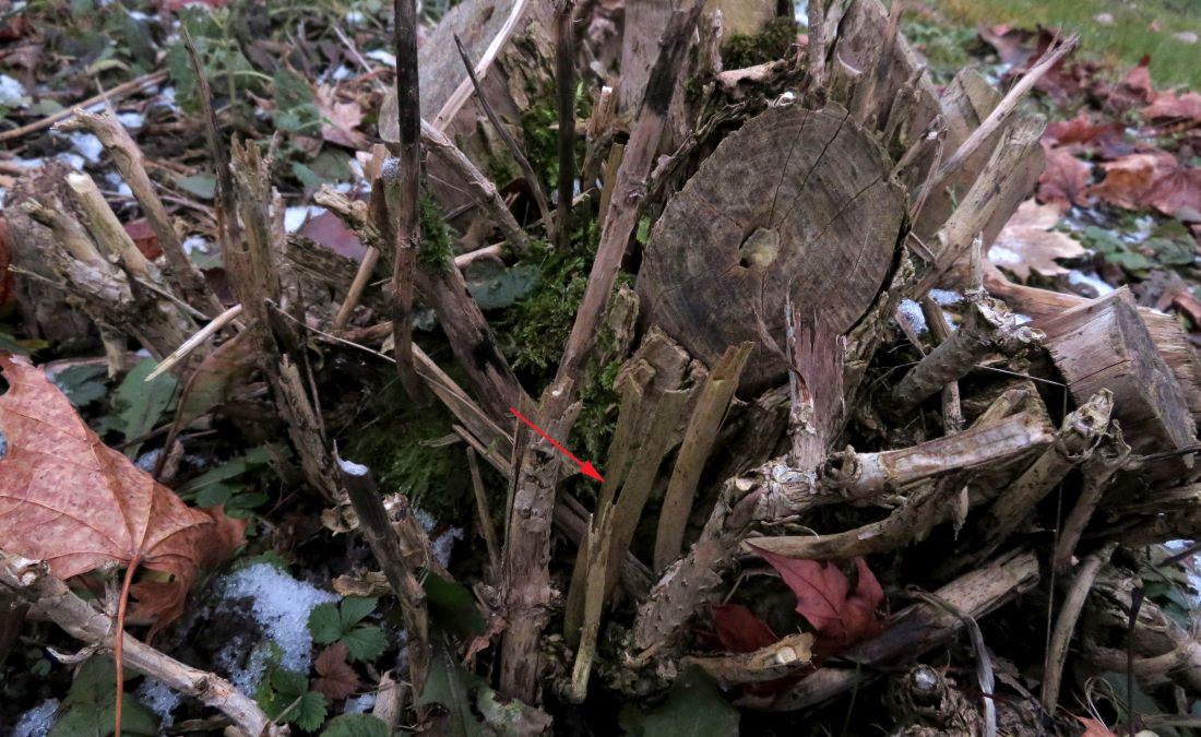 Gefunden an einer vor ein paar Jahren in einem Garten gefällten Hainbuchenhecke. An den Stümpfen davon hab ich an der Seite eines dünneren Triebs kleine schwarze Punkte gesehen.