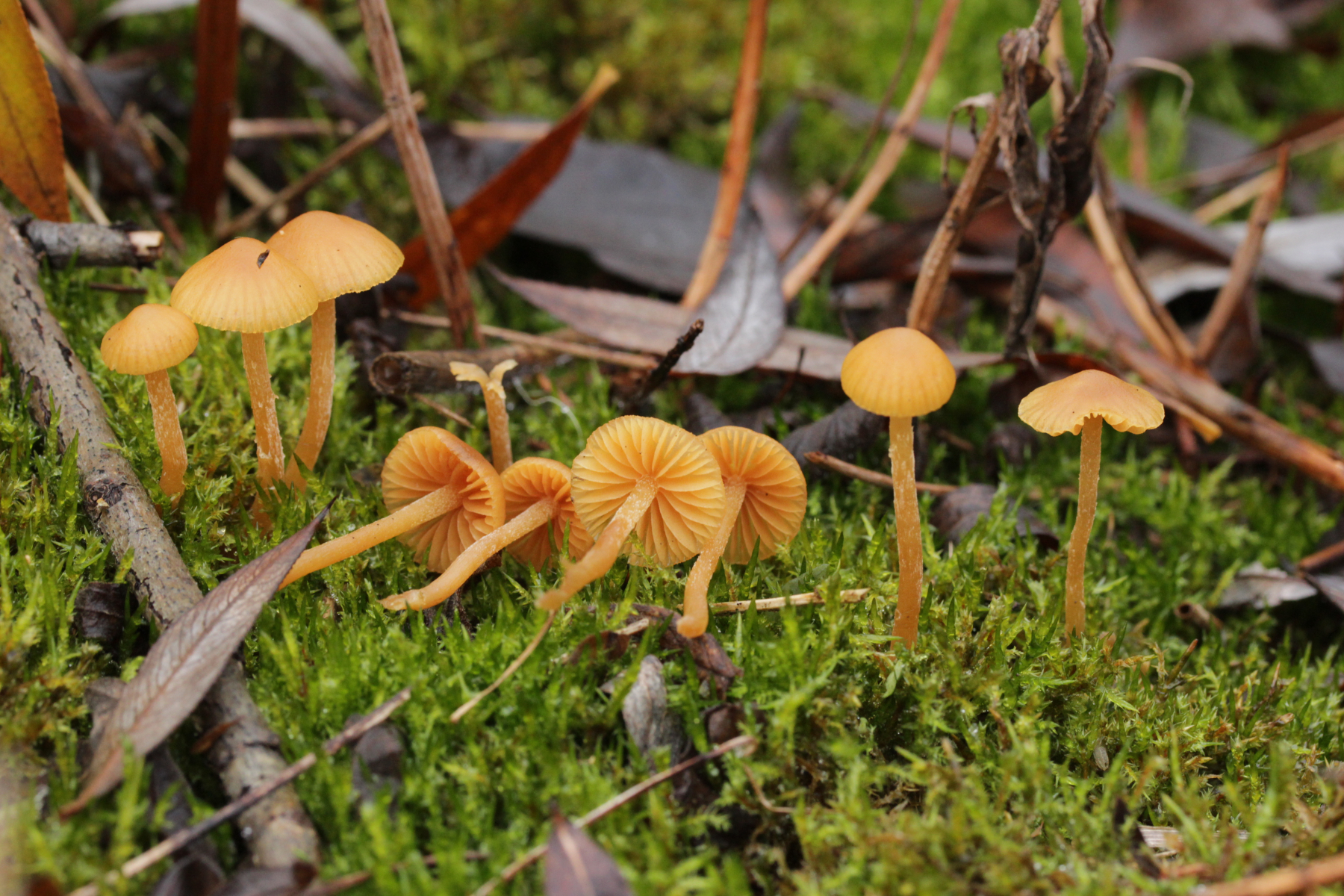 11. Die Kletteranlagen im Landschaftspark sind coronabedingt gerade geschlossen, aber das stört den Geröllnabeling Arrhenia rickenii nicht und er klettert munter an bemoosten Steinen hoch.