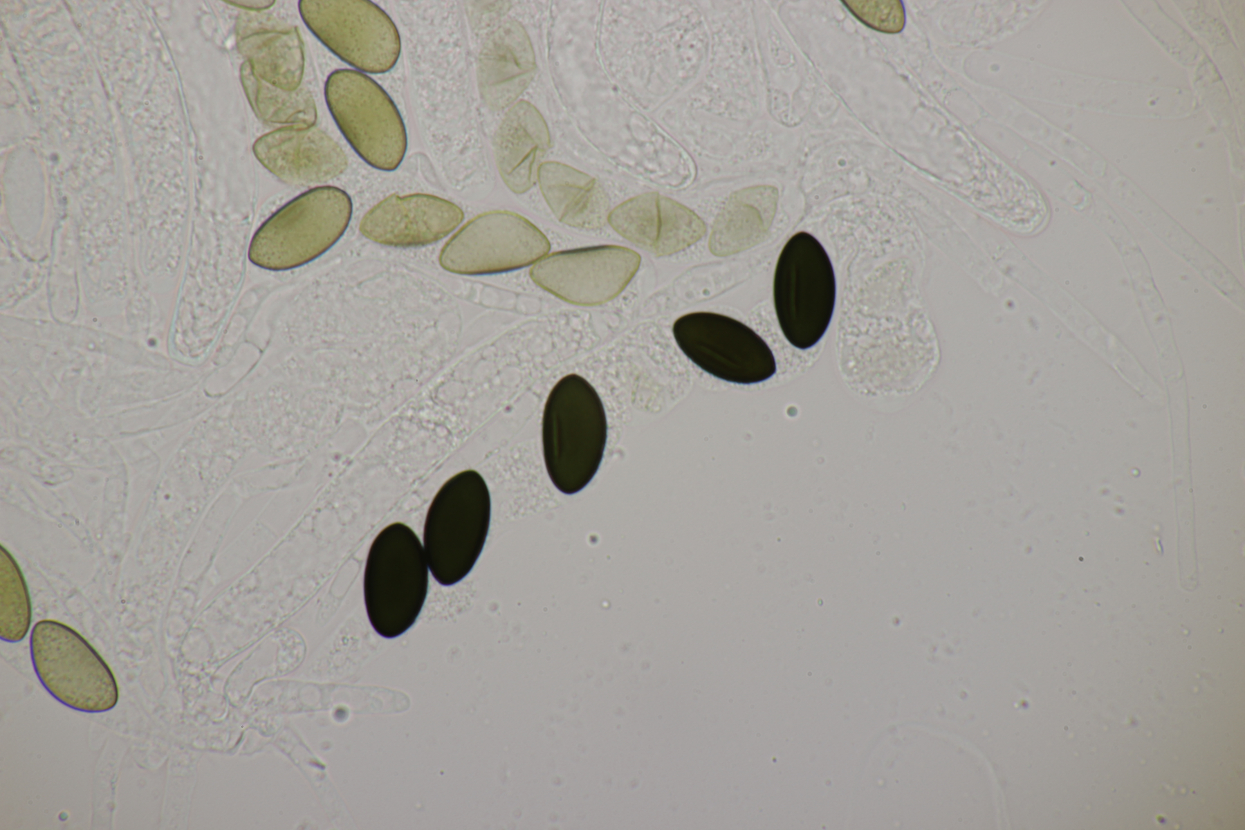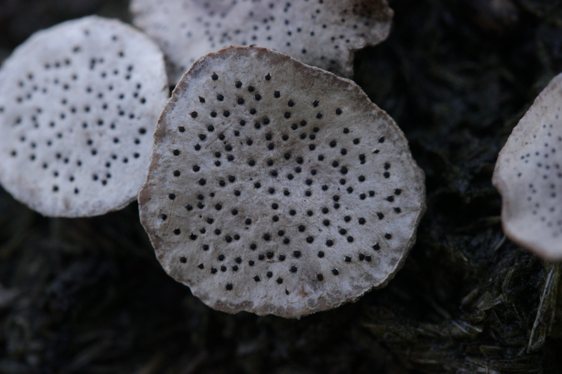 wie an anderer Stelle bereits schon geschrieben, war ich am letzten Samstag in der Nähe der Krickenbecker Seen unterwegs und habe nach Pilzen geschaut. Dabei hatte ich nach Karls Bericht von der Vorwoche natürlich auch einen Abstecher zur Wankumer Heide gemacht. Das Gebiet ist mit Koniks beweidet und entsprechend abgezäunt. Ich habe also eine Runde drumherum gedreht in der Hoffnung, daß auch irgendwo mal ein Pferdehaufen mit Poronias in Zaunnähe liegt. Das war aber leider irgendwie nicht der Fall. Auf halber Strecke um das Gebiet stand dann ein Wagen am Zaun und ich wurde von einem Herrn von der biologischen Station dort angesprochen, ob ich Geocacher sei - wegen meines Sortimentkoffers, der mich auf Exkursionen immer treu begleitet. Ich erklärte dann, daß ich auf der Suche nach Pilzen sei und zeigte dann auch direkt ein paar kleine und unscheinbare Funde, um den Gedanken an Speisepilze im Keim zu ersticken. Er fragte dann weiter, ob ich von der Arbeitsgemeinschaft Pilzkunde Niederrhein sei und ich erklärte, daß ich vom Nachbararbeitskreis Pilzkunde Ruhr stamme. Daraufhin meinte er dann direkt, er habe da etwas für mich, kletterte über den Zaun und kam wenige Sekunden später mit einem Pferdeapfel, gespickt mit Poronia punctata in der Hand wieder. Das war natürlich ein willkommenes, vorgezogenes Nikolausgeschenk, das ich dann ausgiebig abgelichtet und zu Hause auch mikroskopiert habe. Aber seht selber: